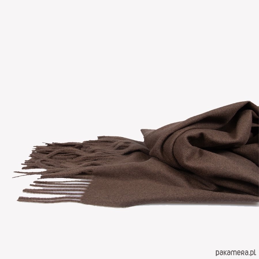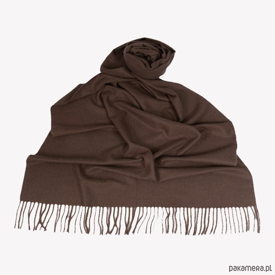 Ciepły szal szalik w kolorze czekoladowym z frędzlami 65 cm x 220 cm