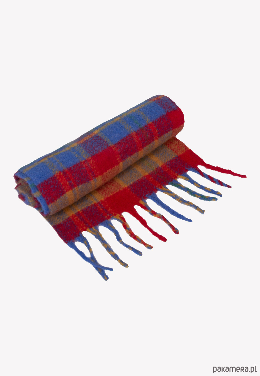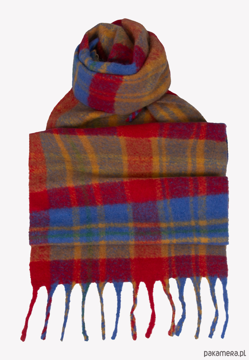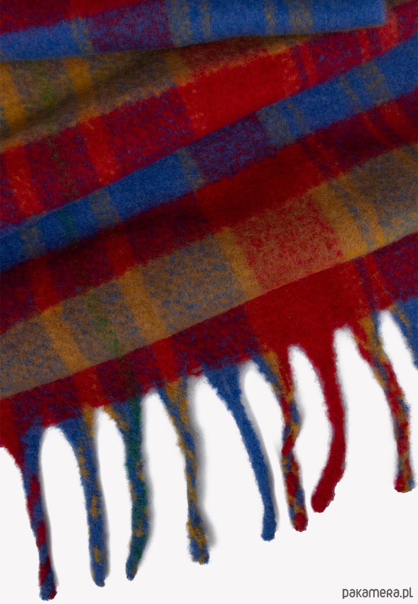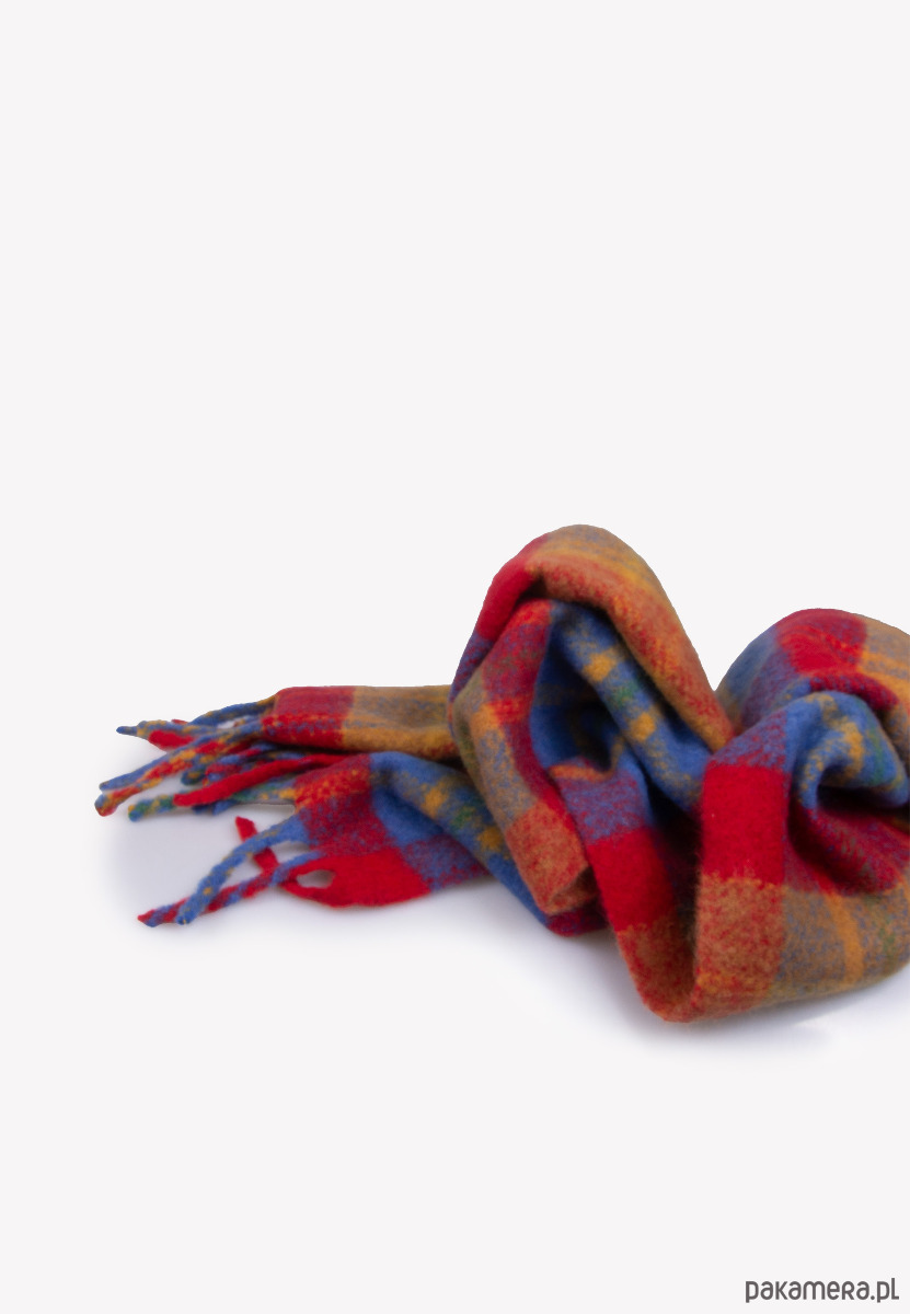 Szal czerwony w kratę z frędzlami 40x200 cm