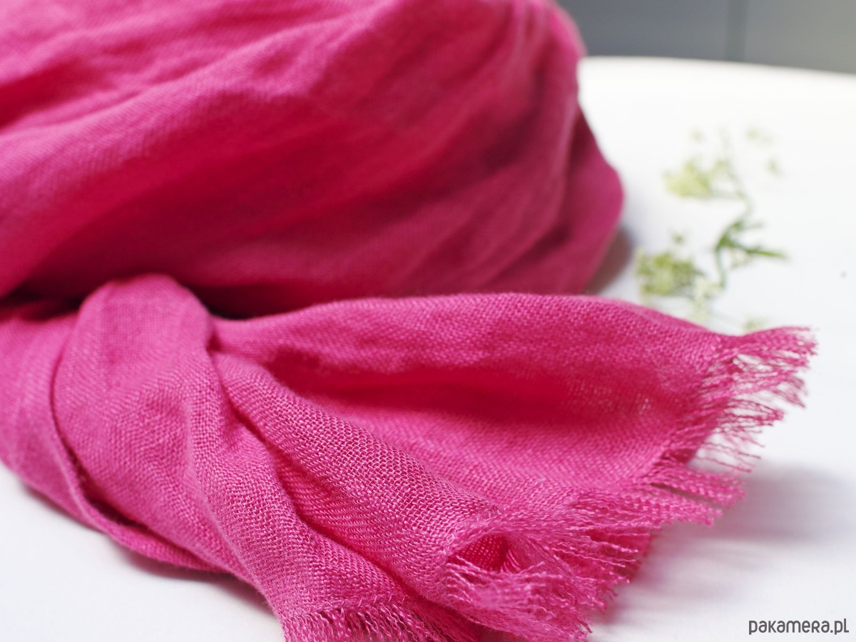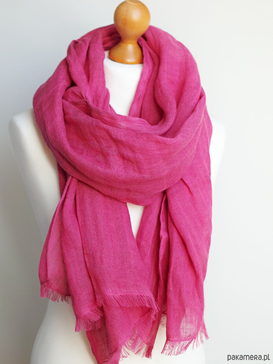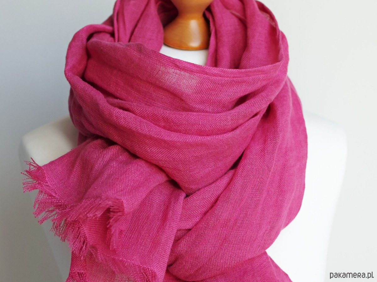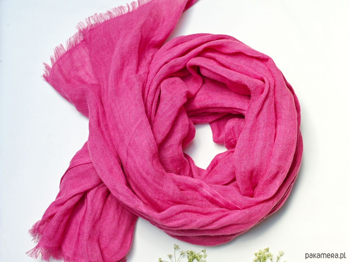 Szal lniany damski, lniany szal szalik RÓŻOWY
