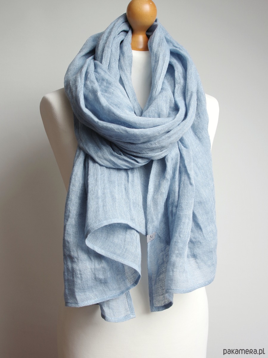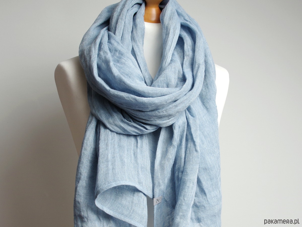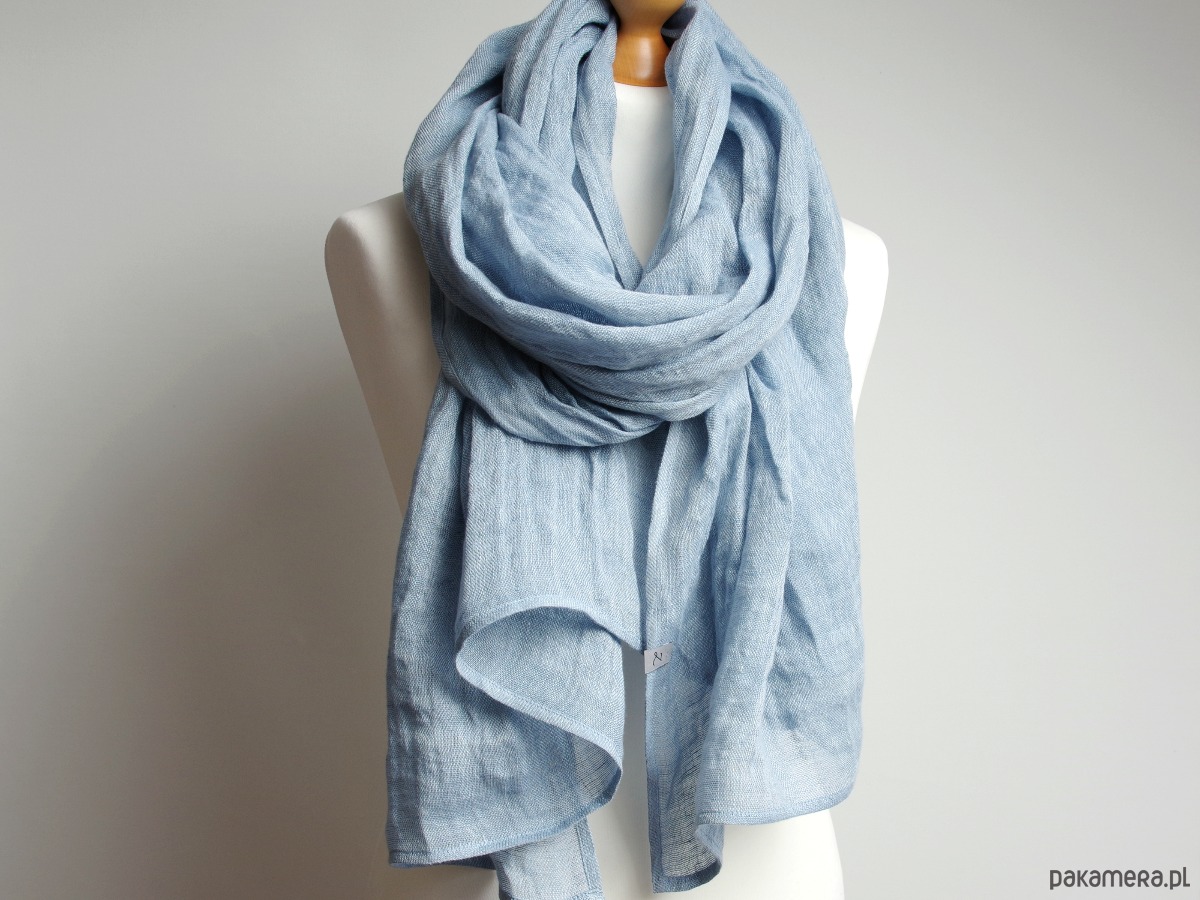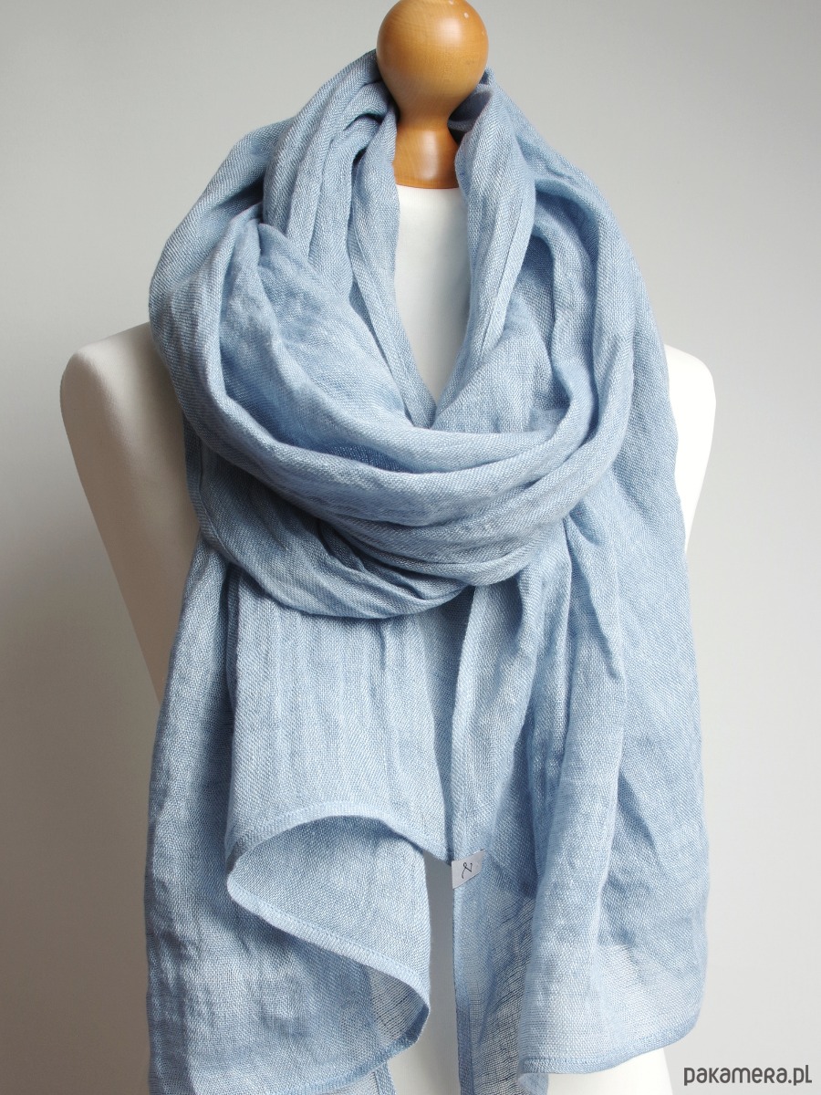 Szal lniany damski, lniany szalik wiosenny, NIEBIESKI