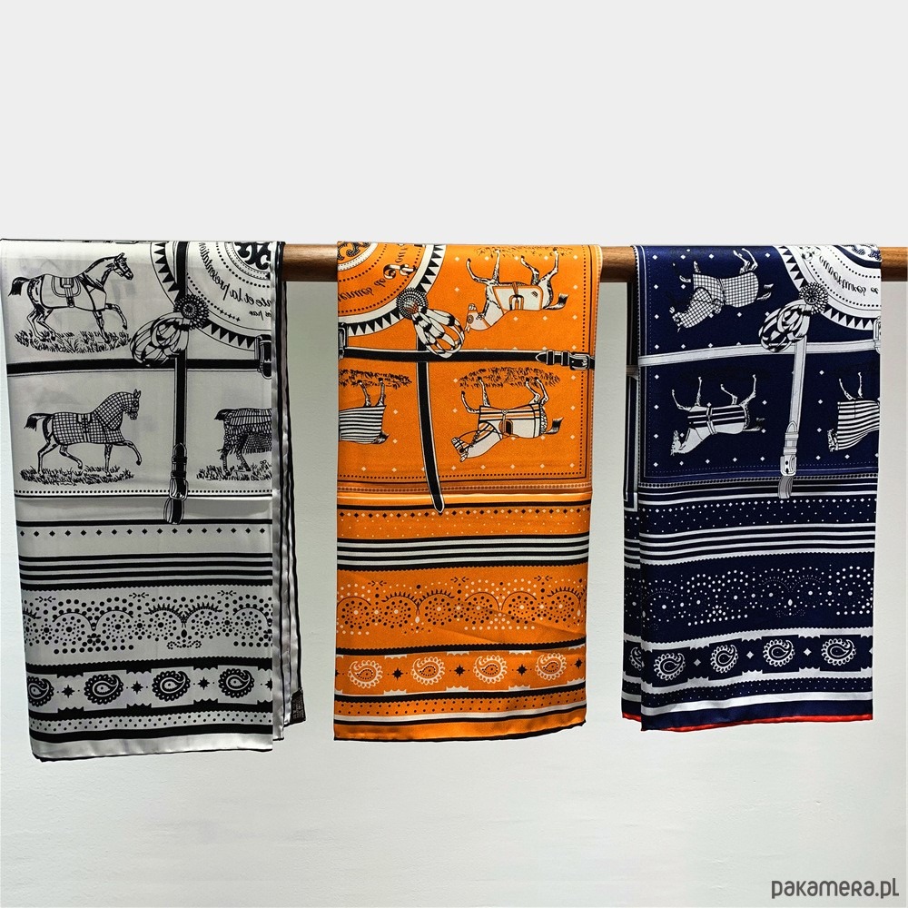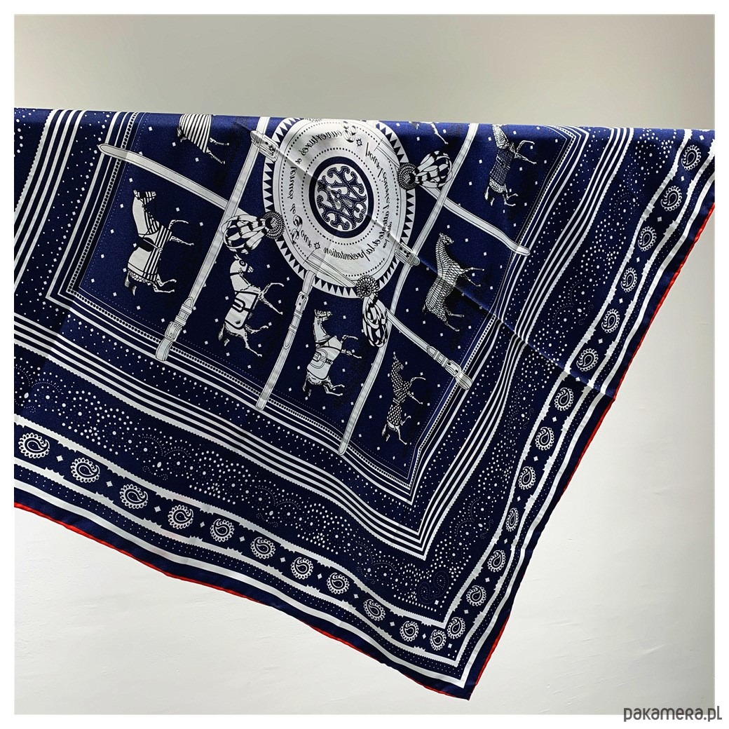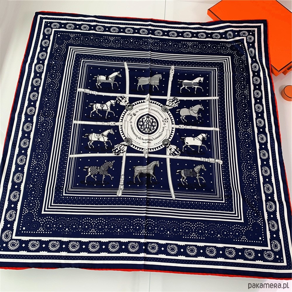 SZAL SZALIK jedwab Apaszka chusta granatowa konie