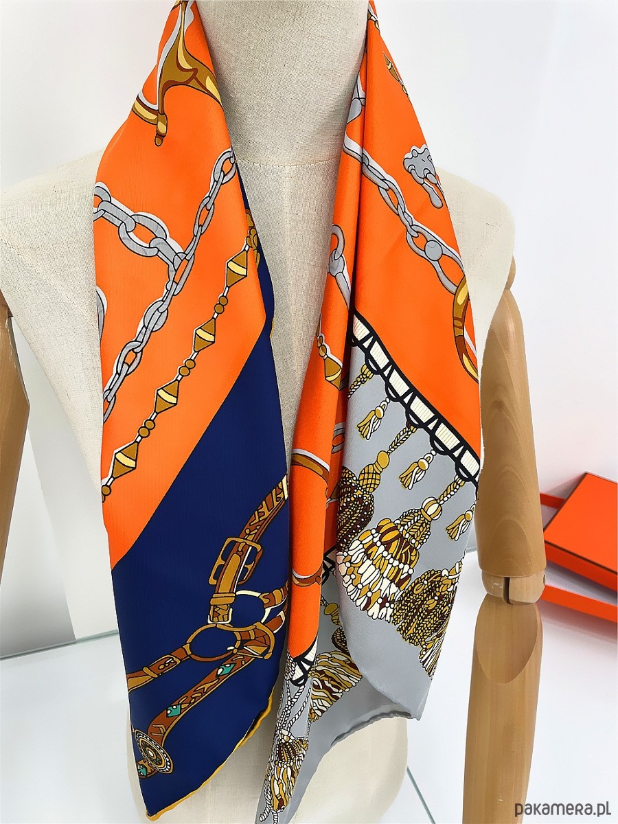 SZAL SZALIK jedwab Apaszka chusta pomarańczowa