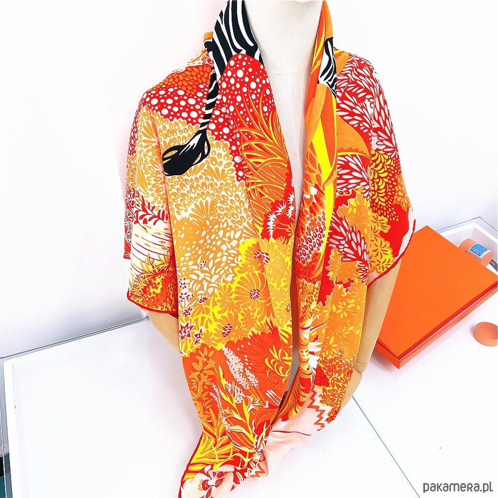 Daj się ponieść luksusowi i elegancji jedwabiu - ta chusta jest nie tylko akcesorium, to prawdziwe dzieło sztuki, które podkreśli Twoją wyjątkowość i styl.