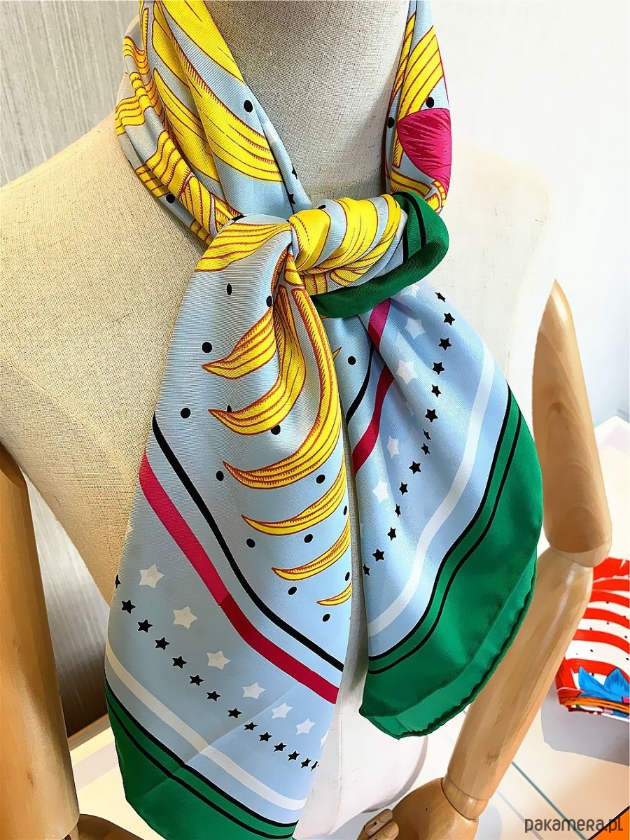 SZAL SZALIK jedwab Apaszka chusta zielona żółta