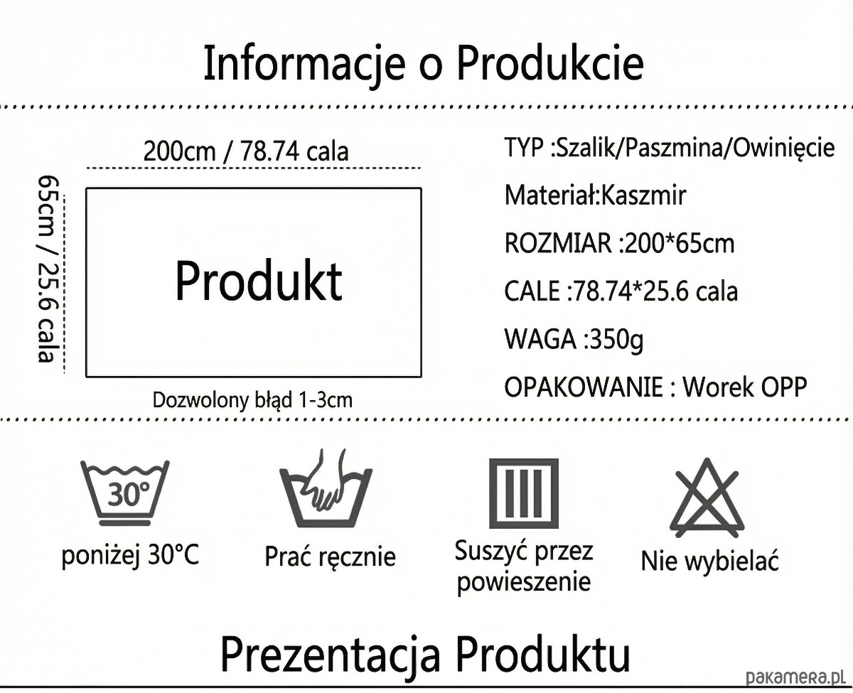 SZAL SZALIK DAMSKI 100% KASZMIROWY Dwustronny szal wykonany z kaszmiru