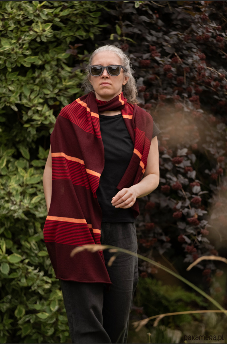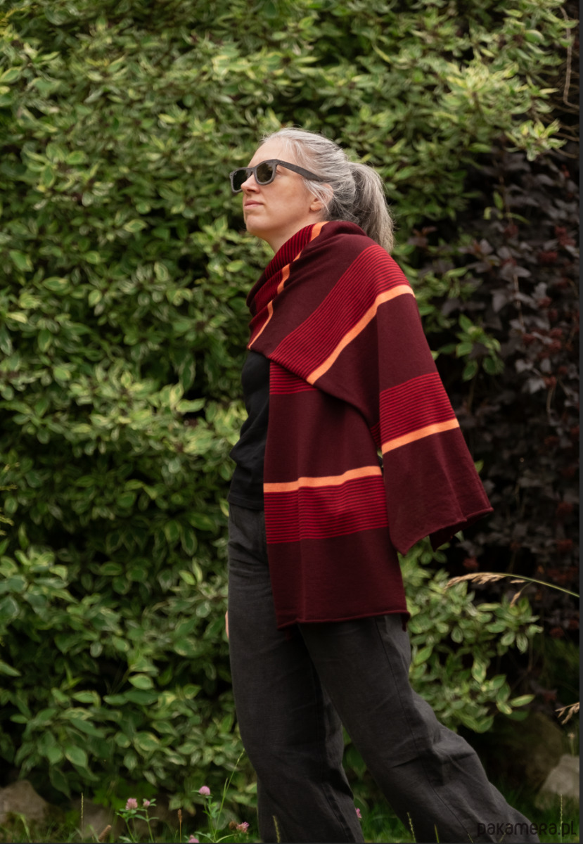 Szal szalik w paski bordo, czerwień i pomarańcz