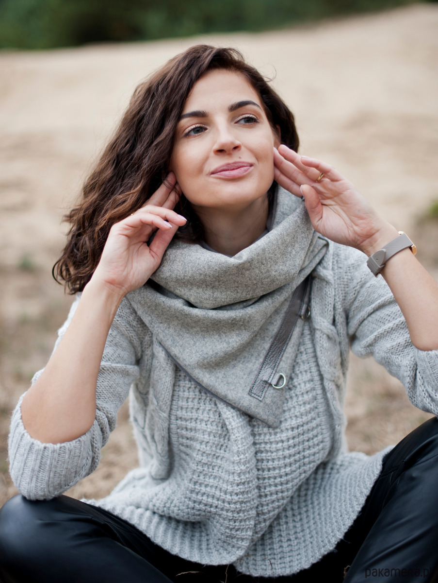 Szal można nosić na wiele sposobów. Wygląda naprawdę znakomicie.