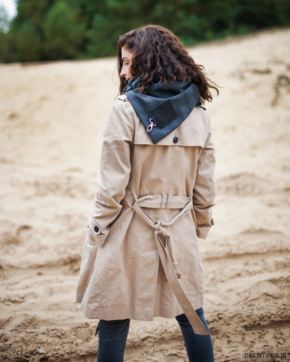 Szal można nosić na wiele sposobów, na ostatnim zdjęciu przykład innego upięcia pokazany na bardzo podobnym, czarnym szalu. Wygląda naprawdę znakomicie.