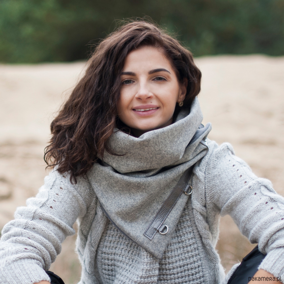 Szal można nosić na wiele sposobów. Wygląda naprawdę znakomicie.