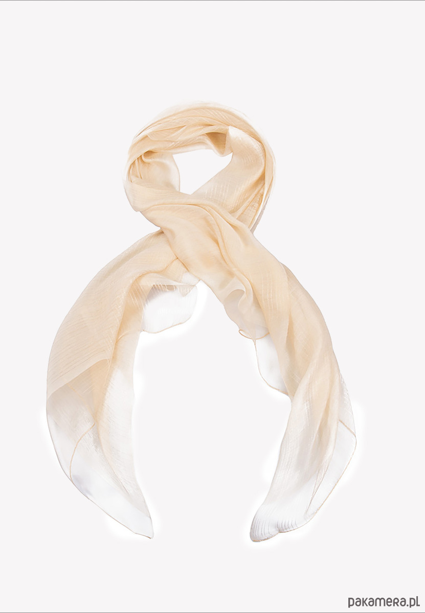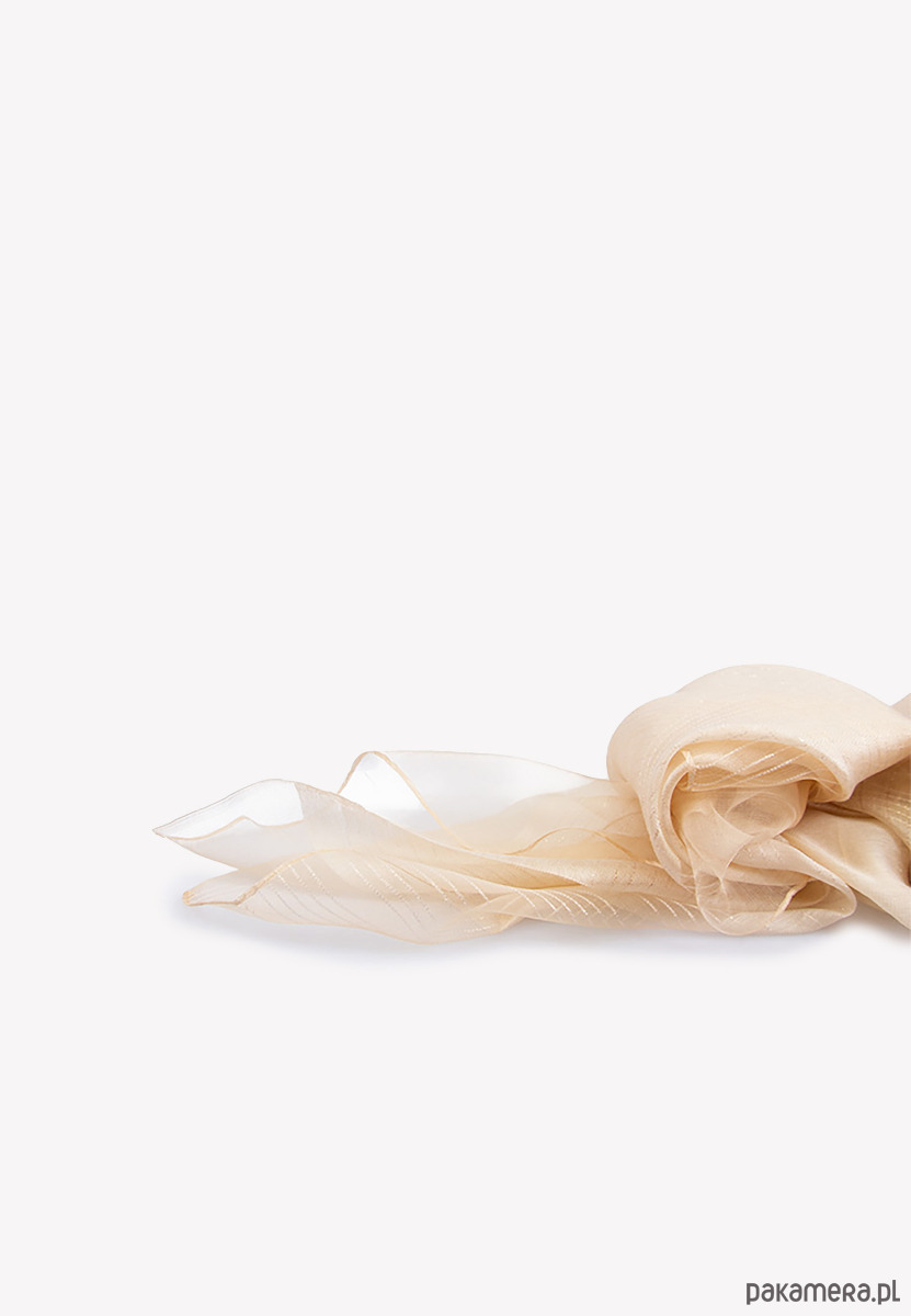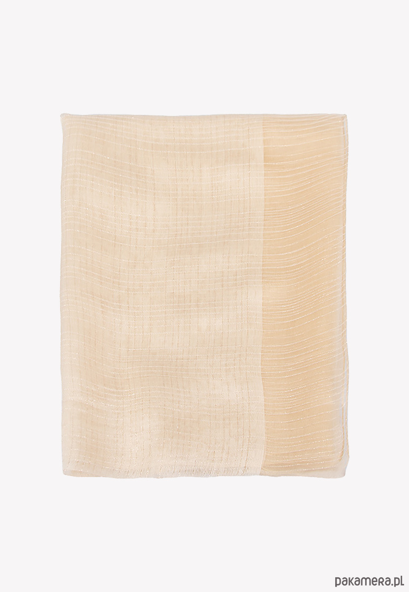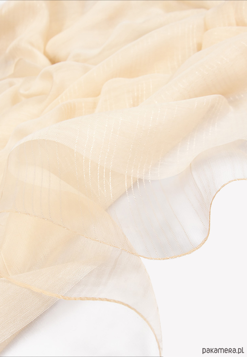 Szal wieczorowy jedwab z wełną beżowy z ozdobną złotą nitką 70x190 cm