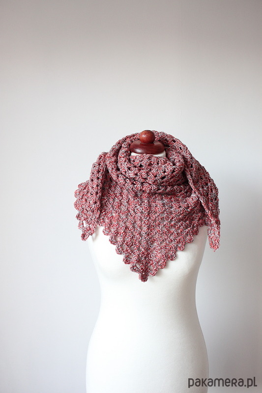 Chusta - apaszka zrobiona na szydełku z cieniutkiej akrylowej włóczki w dwóch kolorach. Leciutka i delikatna, doskonała do wiosennych stylizacji.