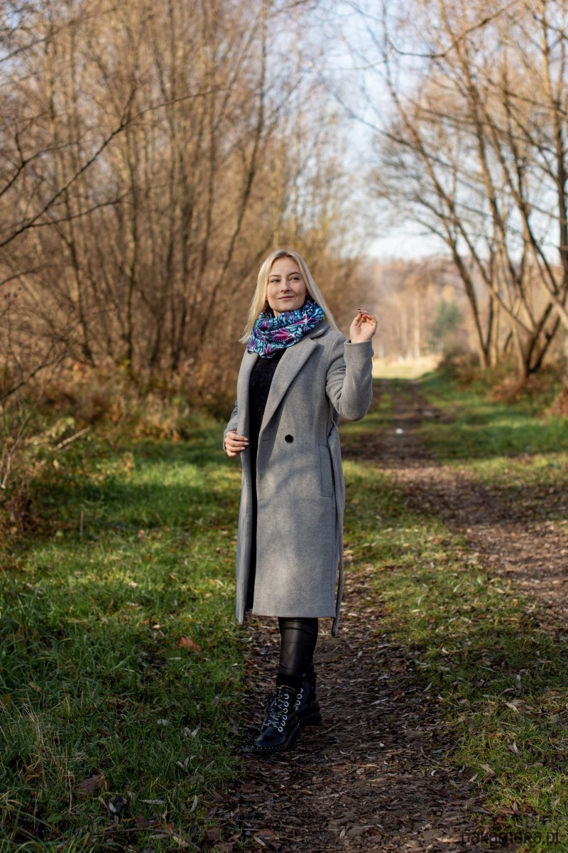 Rozmiar komina 140 x 38 cm pozwala na swobodne zawinięcie komina dwukrotnie wokół szyi.