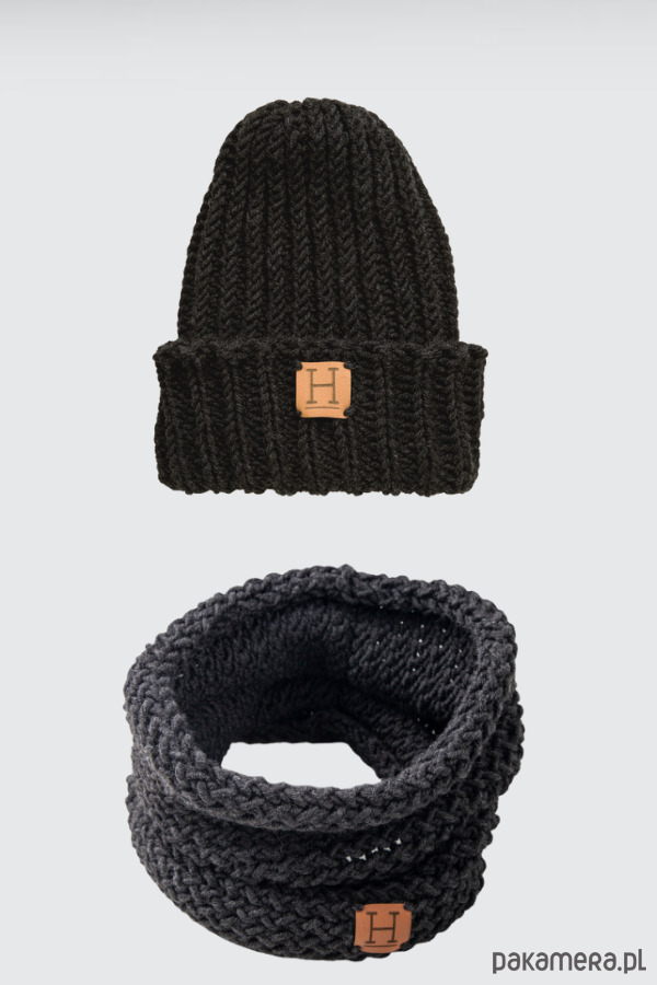 Komin i czapka z wełny merynosa handmade GRAFIT