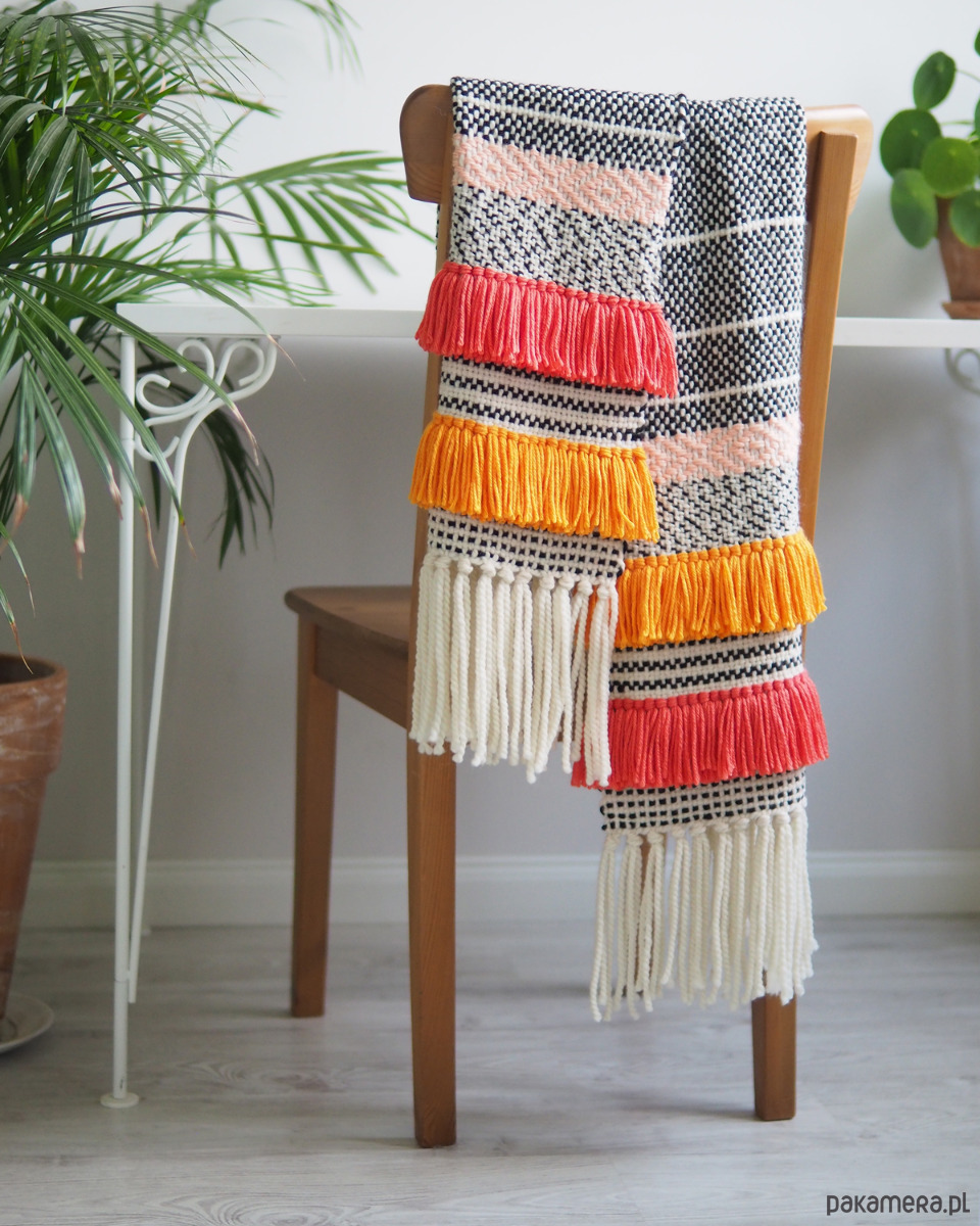 Unikalny, ręcznie tkany szal z wysokiej jakości naturalnej wełny. Zaprojektowany i wykonany w warszawskiej pracowni na 50-letnim drewnianym krośnie tkackim. Niezwykle miękki i ciepły wełniany szal ogrzeje nawet największego zimowego zmarzlucha.