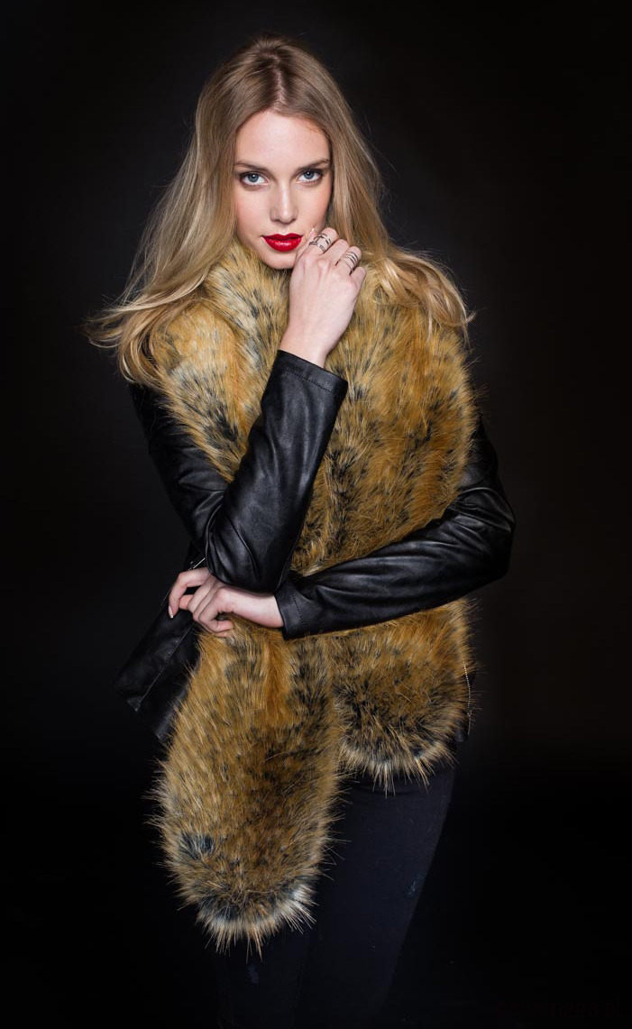 Zjawiskowy szeroki szal/etola idealny zarówno do karnawałowej kreacji jak i skórzanej ramoneski. Wykonany ze sztucznego włoskiego futra imitującego futro lisa, od spodu podszewka w kolorze czarnym. Na środku zapięcie na jedną haftkę. Ciepły i przyjemny w dotyku.