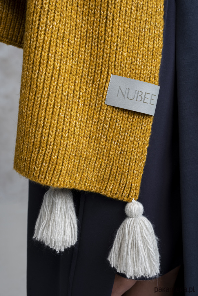 ZIMOWY SZALIK TWISTMEE prosty, o grubym splocie. Zrobiony z elastycznej, miękkiej przędzy idealnie ułoży się i będzie Ci w nim wyjątkowo ciepło. Dzięki swej długości można go nosić na różne sposoby, w zależności od upodobań: jako etole, klasyczny szal lub komin. Duża metka na wykonana w 100% ze skóry ekologicznej, z logo NUBEE.