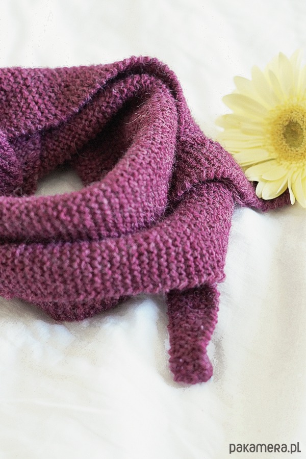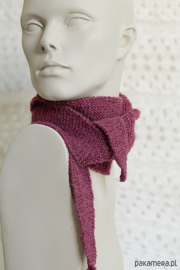 Mini szalik wykonany ręcznie na drutach z miękkiej włóczki.