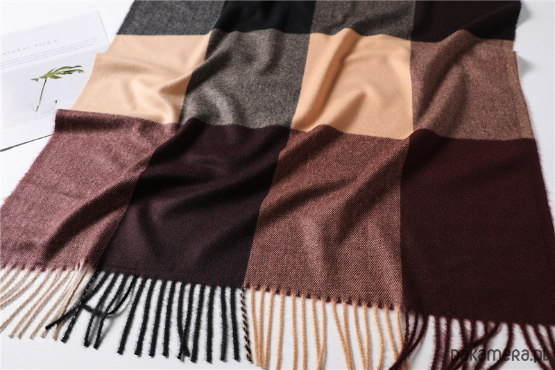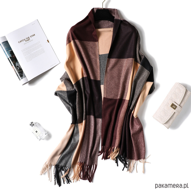 Szalik Damski kaszmirowy brązowy czarny beżowy szal CIEPŁY KLASYK KOLORY