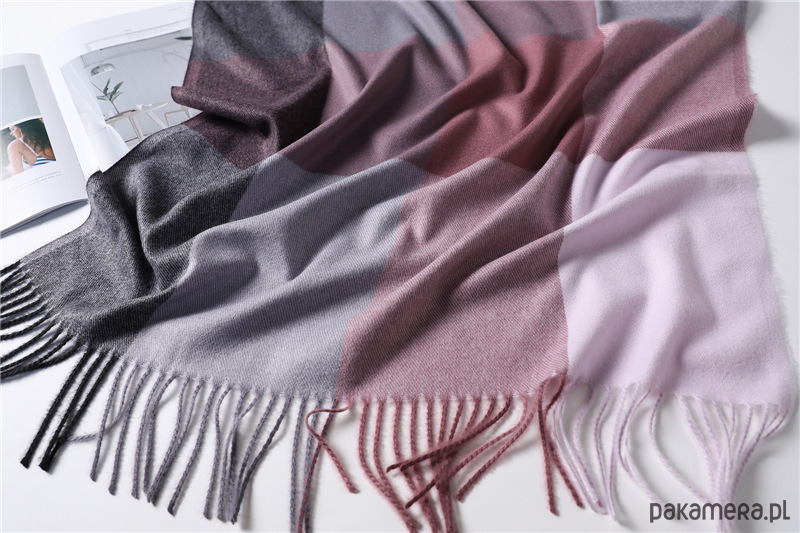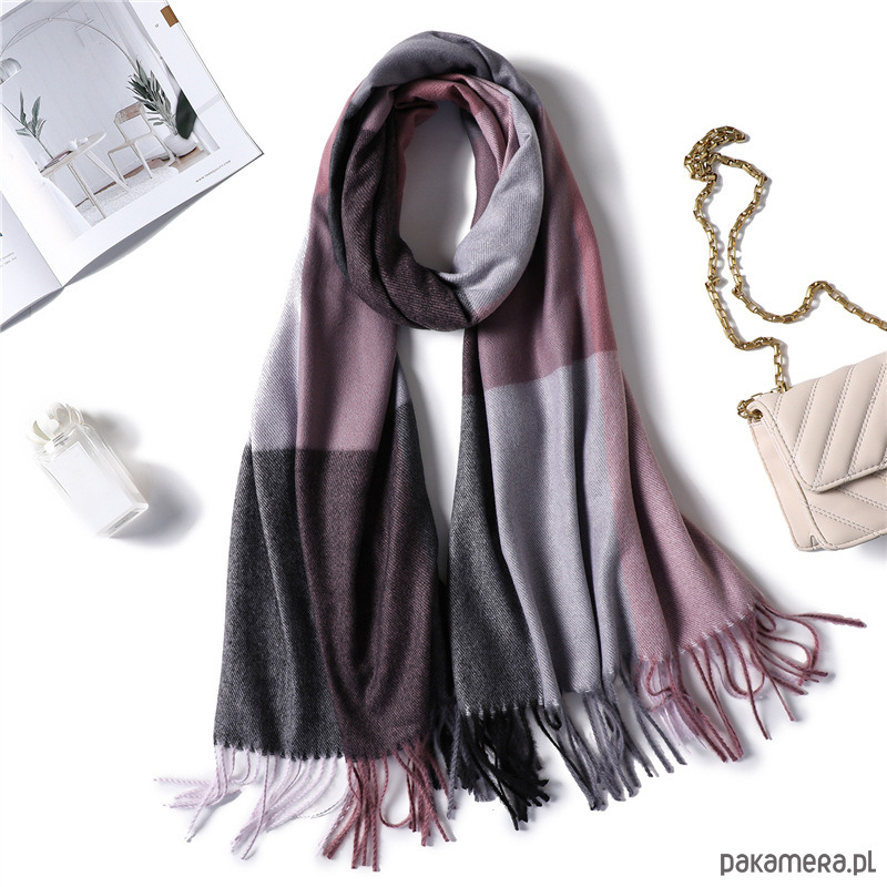 Szalik Damski kaszmirowy fioletowy różowy szal CIEPŁY KLASYK KOLORY AS