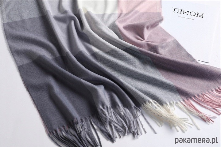 Szalik Damski kaszmirowy Różowy szary biały szal CIEPŁY KLASYK KOLORY AS
