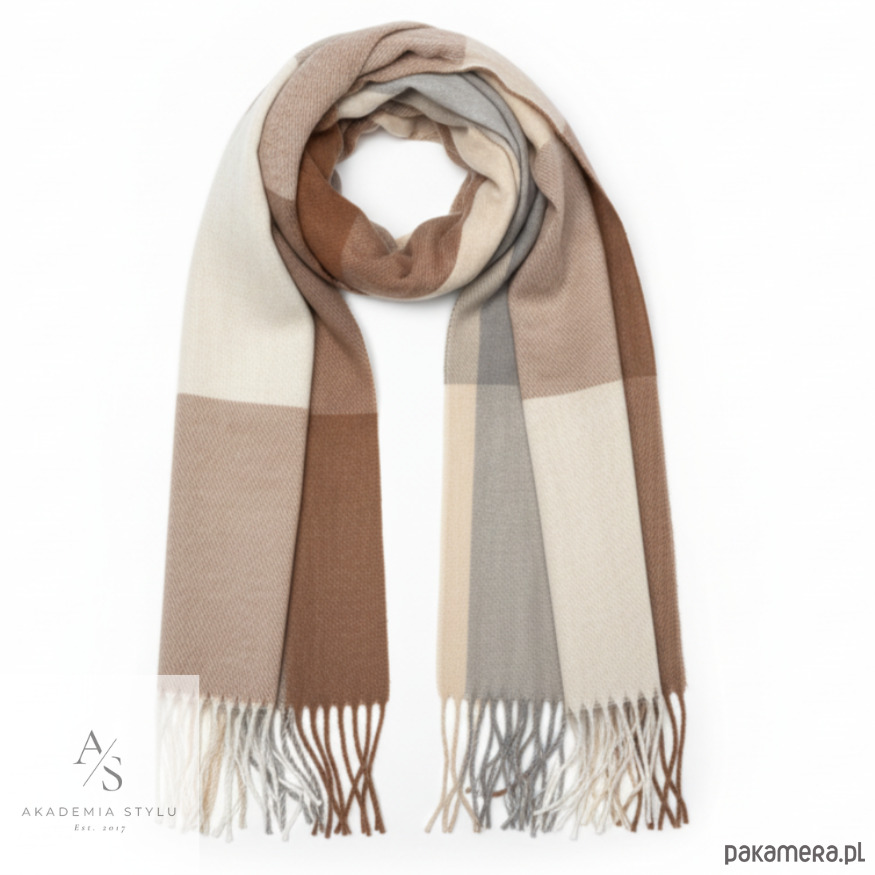 Szalik Damski kaszmirowy w kratkę brązowy beżowy kolorowy szal prezent