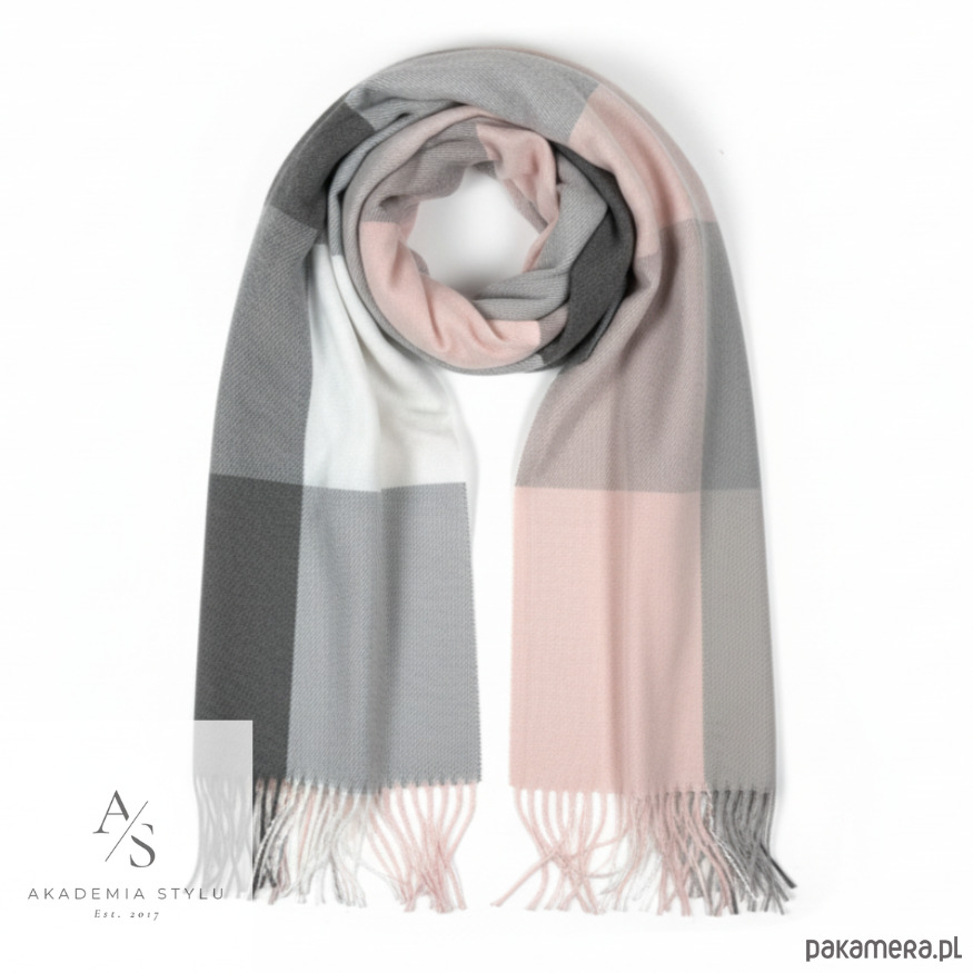 Szalik Damski kaszmirowy w kratkę różowy szary kolorowy szal prezent
