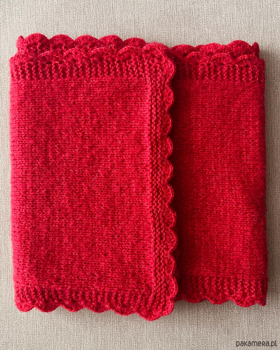 Czerwony kolor nadaje mu wyrazisty charakter i stanowi efektowny akcent zimowych stylizacji. Delikatne ażurowe wykończenie dodaje lekkości i subtelnej elegancji, jednocześnie zachowując komfort termiczny i przyjemne otulenie.
