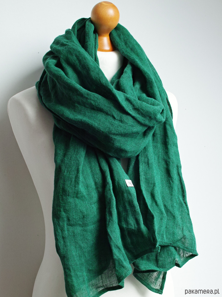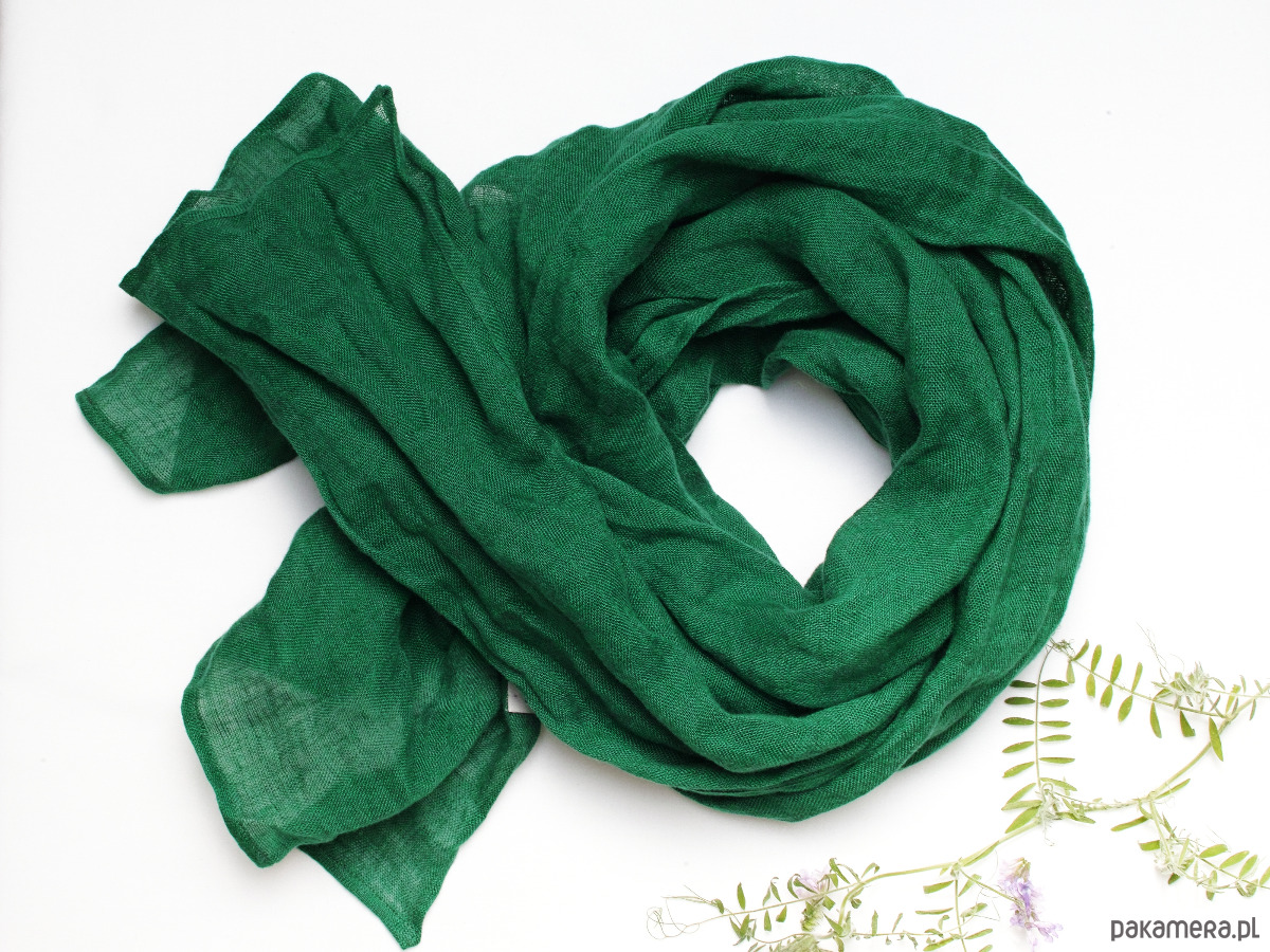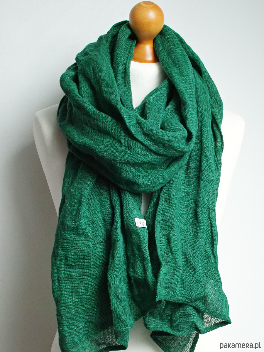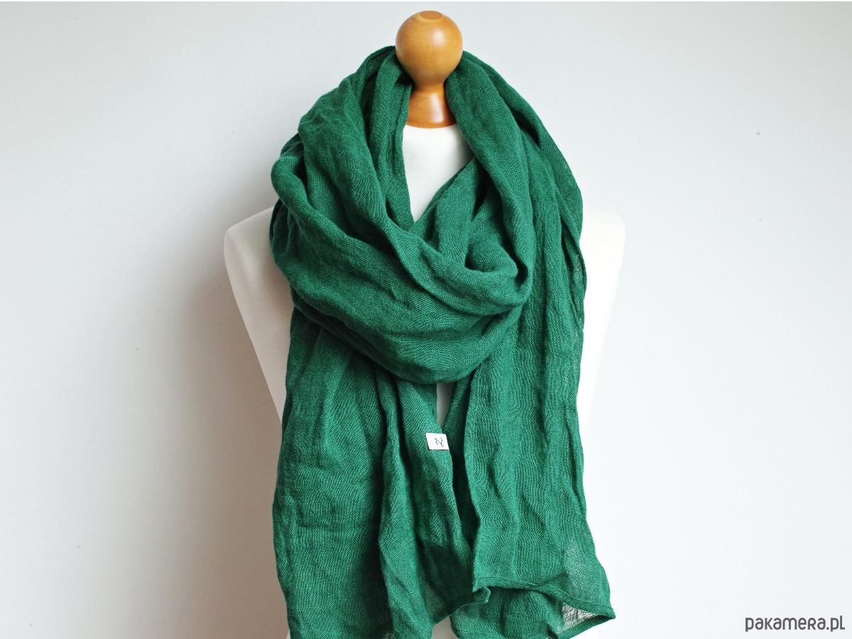 Szalik lniany damski, lniany szal na wiosnę, ZIELONY