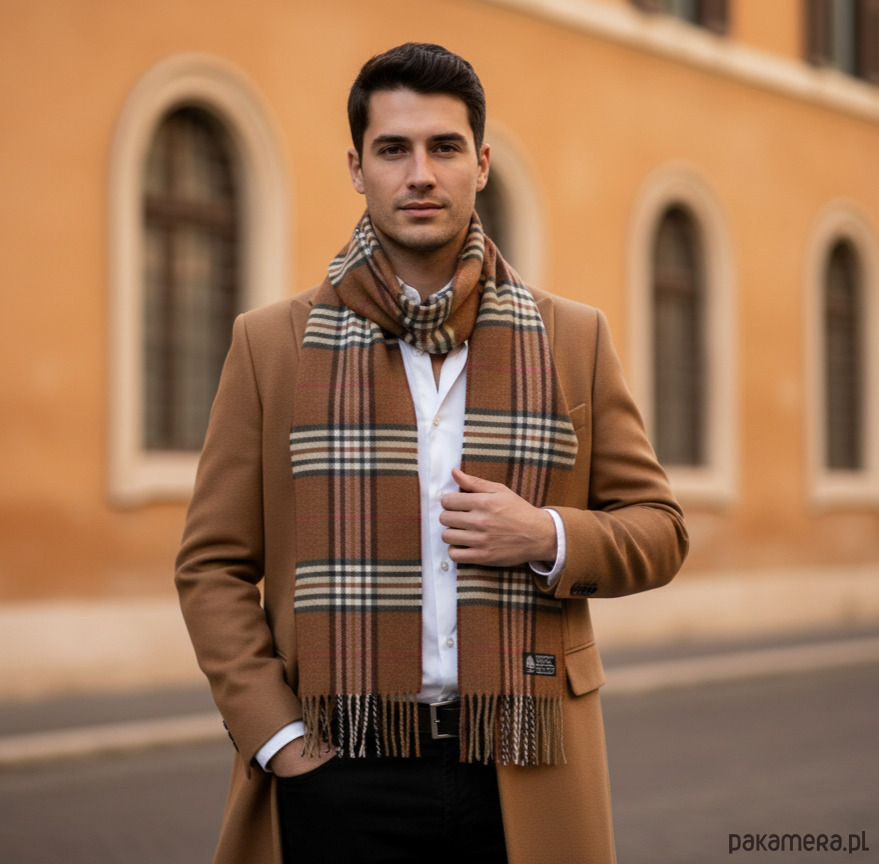Szalik jest bardzo ciepły i miękki. Gwarancja Jakości!Marka: Akademia StyluWymiary: 135 cm x 30 cm z frędzlami.Szalik doda uroku każdej stylizacji. Kolorystyka doskonale komponuje się z wieloma kolorami.Materiał: 100% Wełna.MADE IN GERMANYŚwietny szalik, idealny nie tylko do eleganckich, ale także miejskich, swobodnych stylizacji! Wykonany z wysokiej jakości wełny, ten modny dodatek nie tylko podkreśla Twoją wyjątkową stylizację, ale także chroni przed chłodem dzięki doskonałej izolacji termicznej. Jego niezrównana miękkość sprawia, że noszenie go to prawdziwa przyjemność. Ciesz się komfortem i stylowym wyglądem – niech Twój strój zawsze wyróżnia się elegancją i subtelnym luksusem!