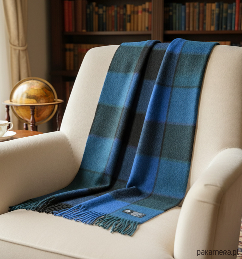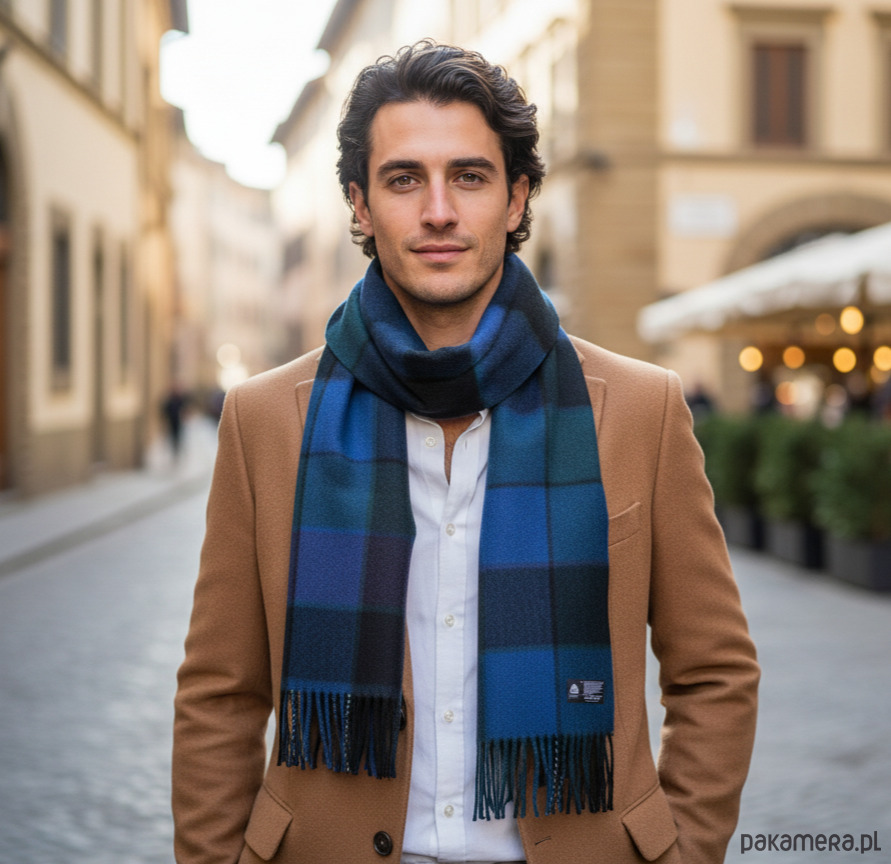 Szalik Męski Granatowy Niebieski Szal Wełniany