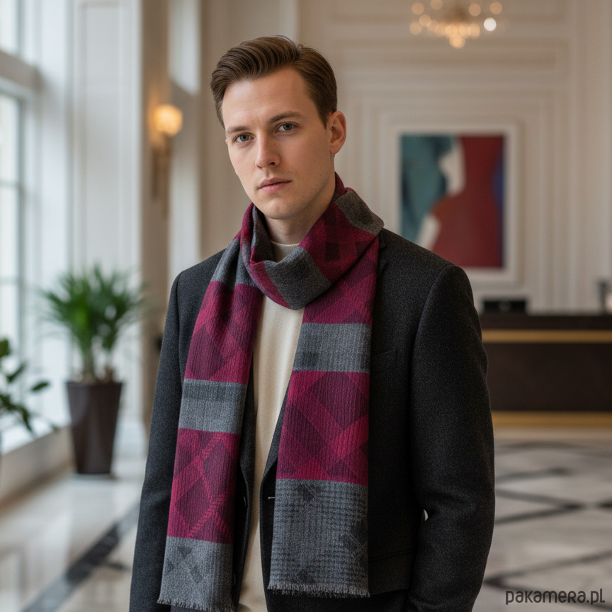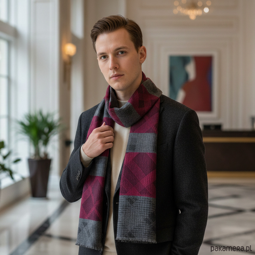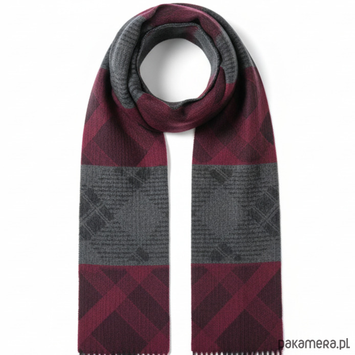 Szalik Męski szal 100% kaszmirowy bordowy wiśniowy szary kaszmir