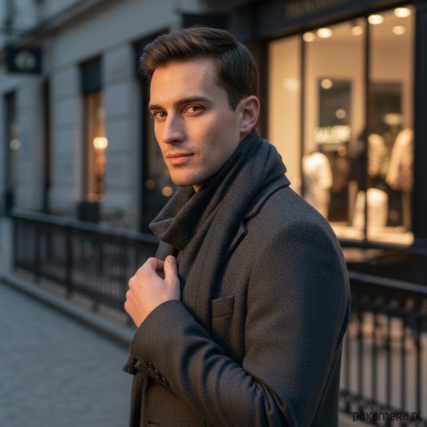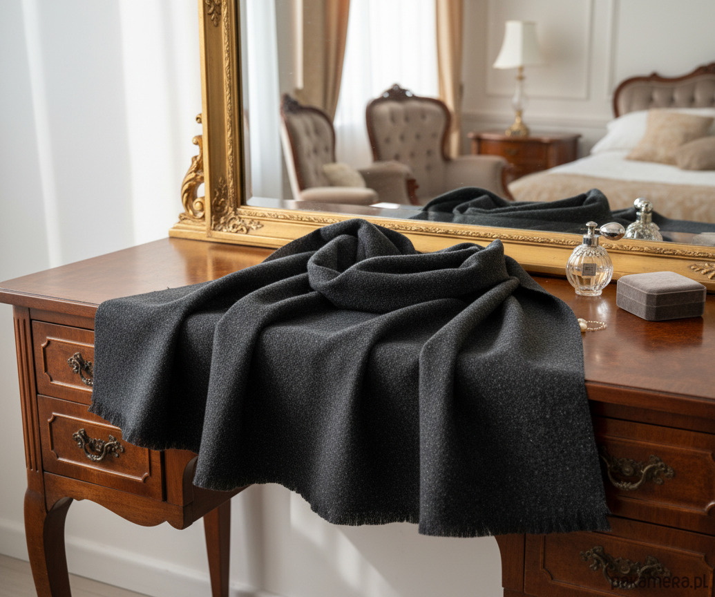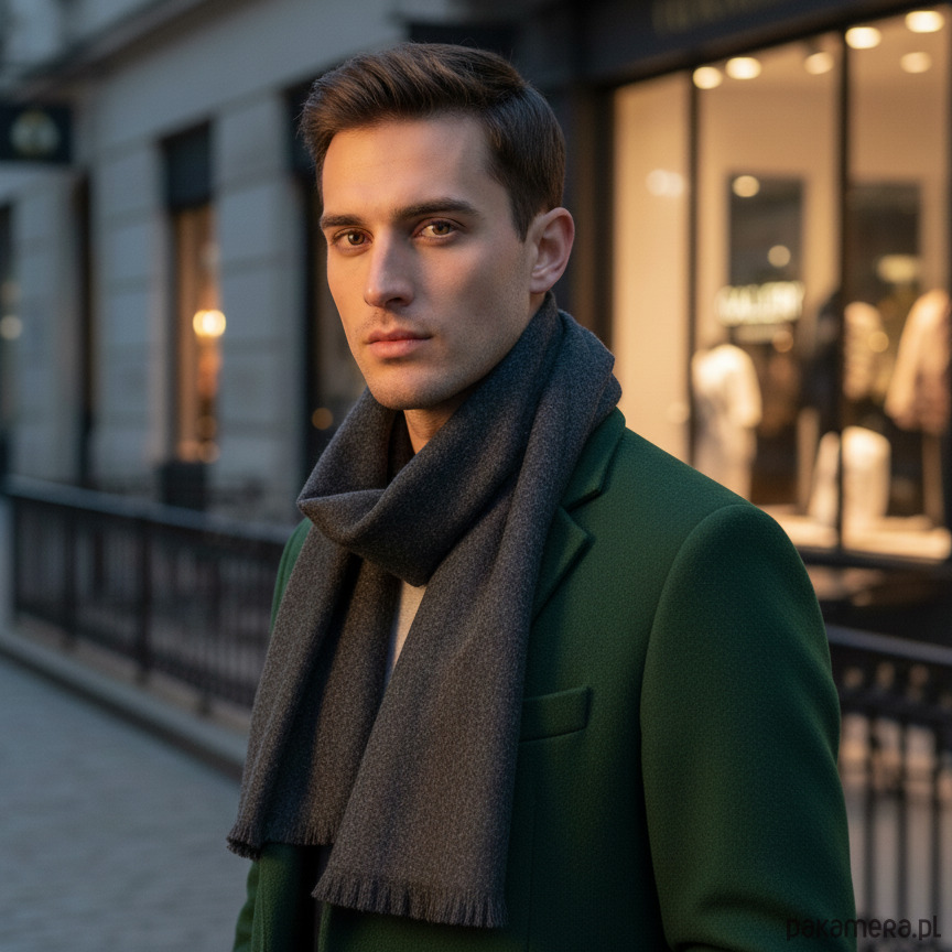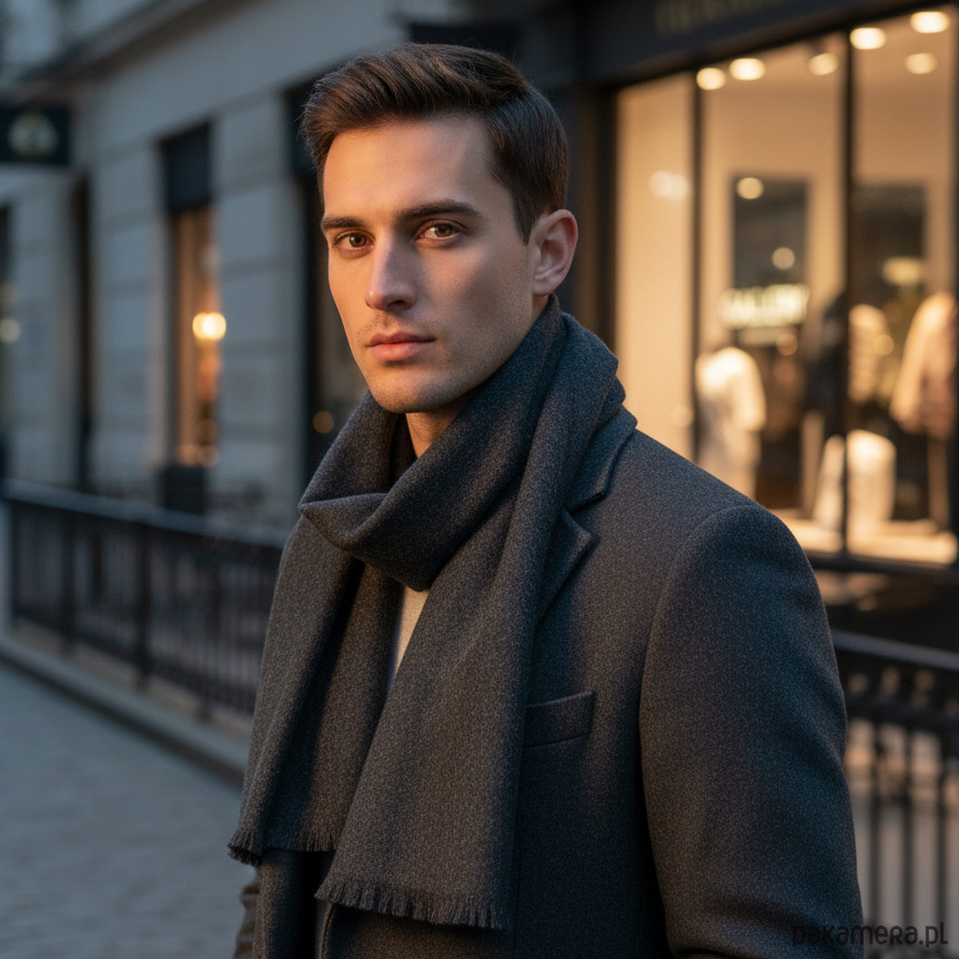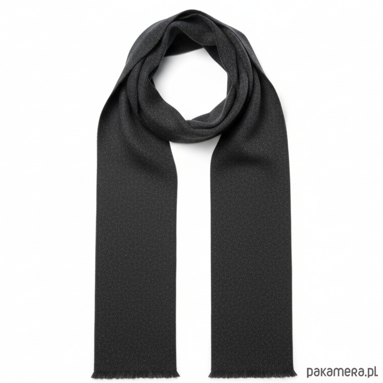 Szalik Męski szal 100% Wełniany JEDWAB czarny szary ciemny prezent elegancki