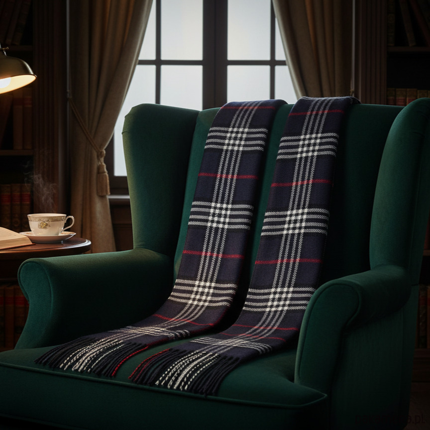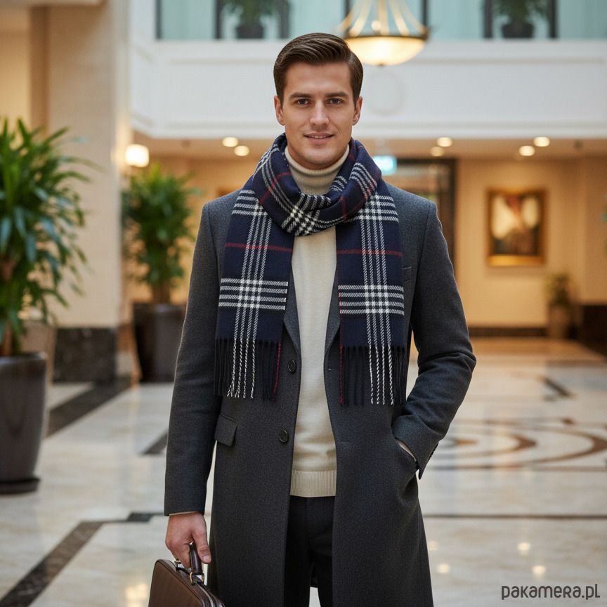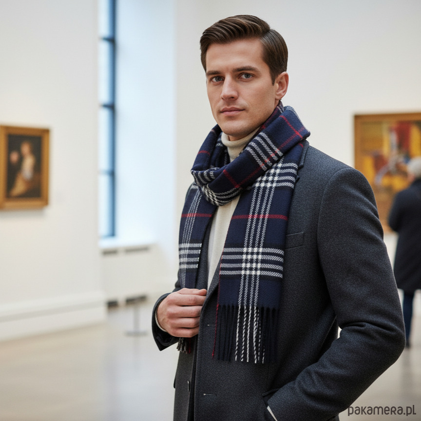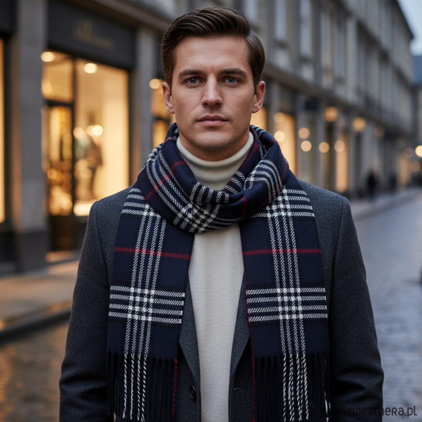 Szalik Męski szal ciemny granatowy szary prezent w kratkę