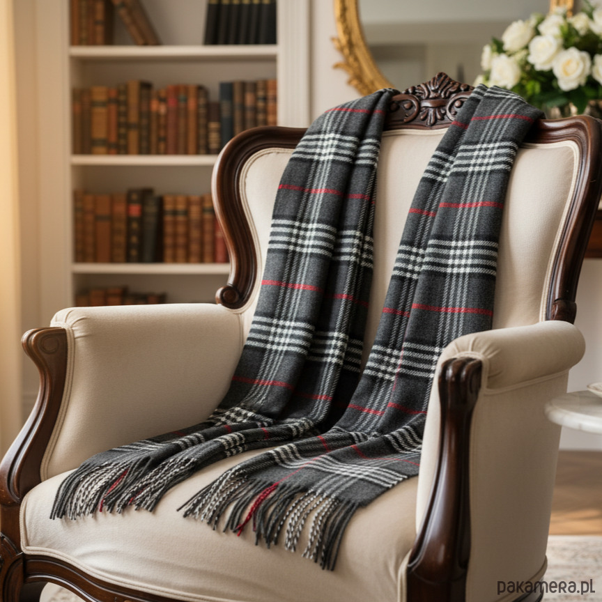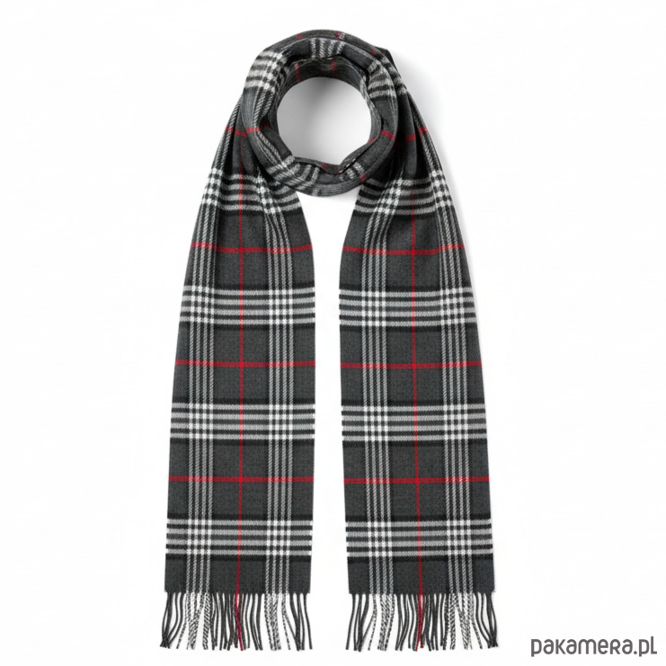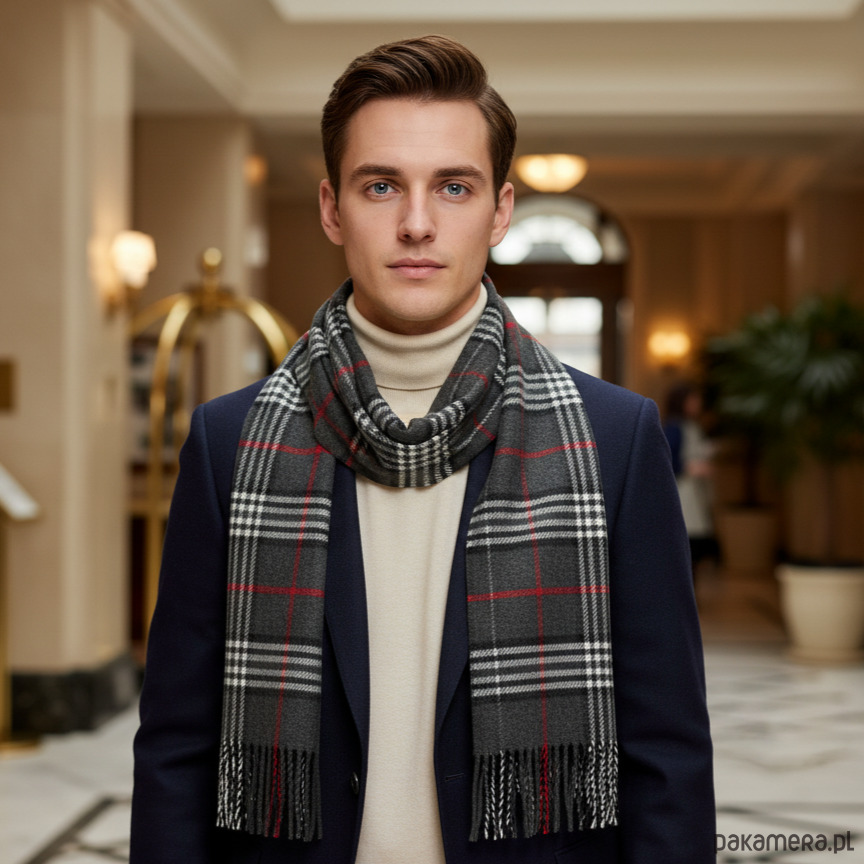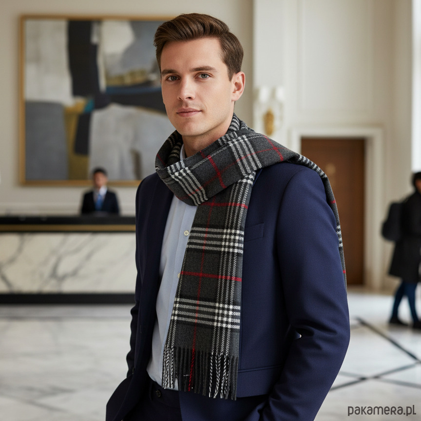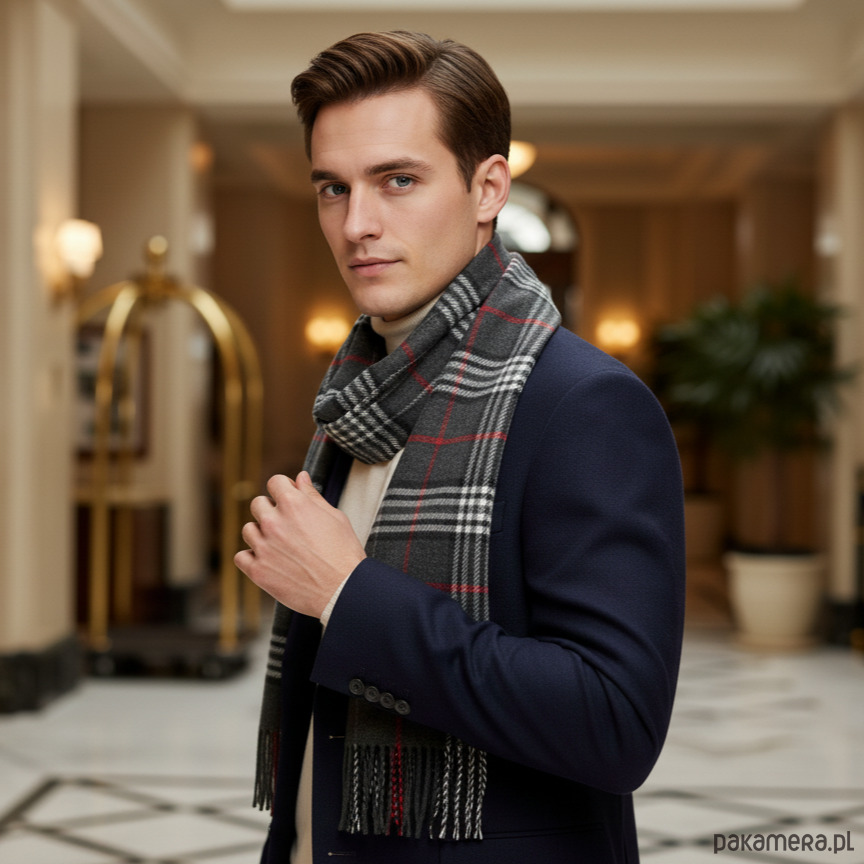 Szalik Męski szal szary czarny prezent w kratkę elegancki