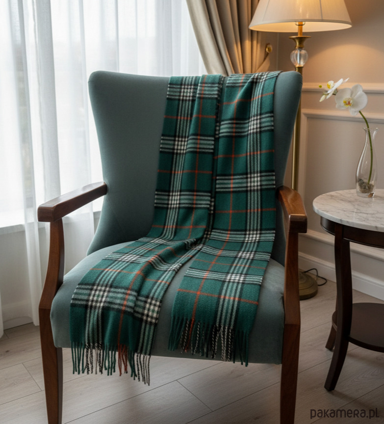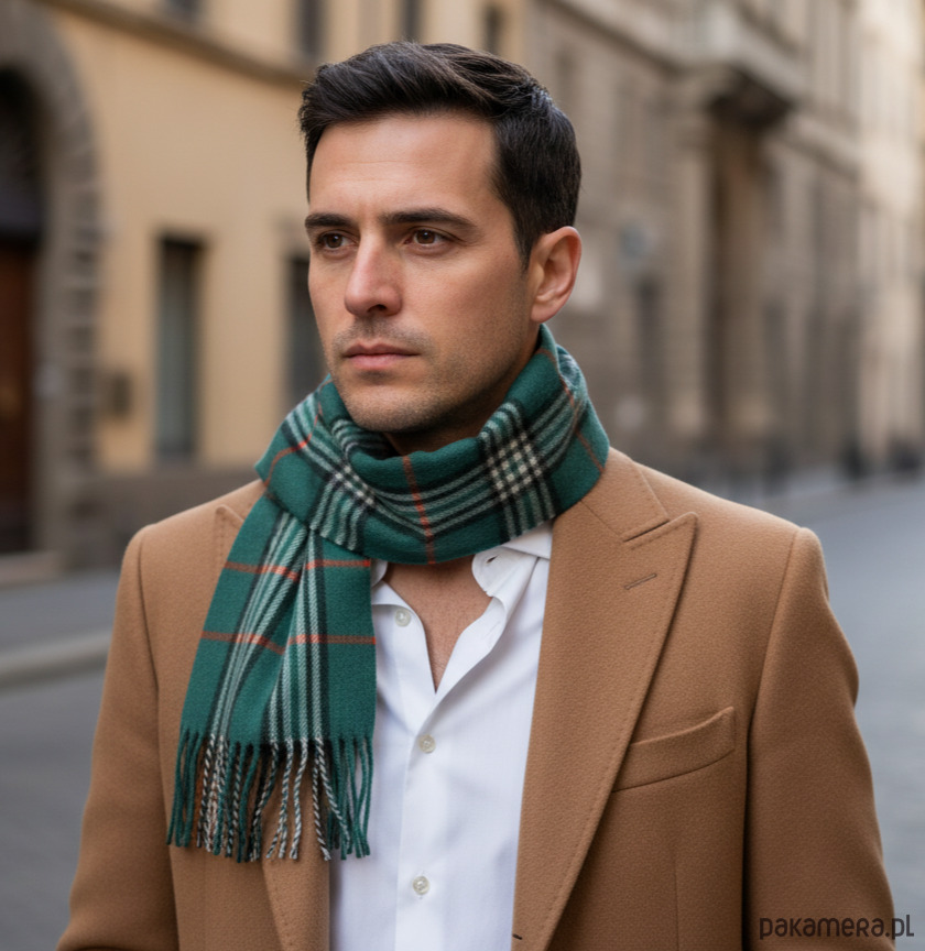Szalik Męski Zielony Kratka Wełna Kaszmir