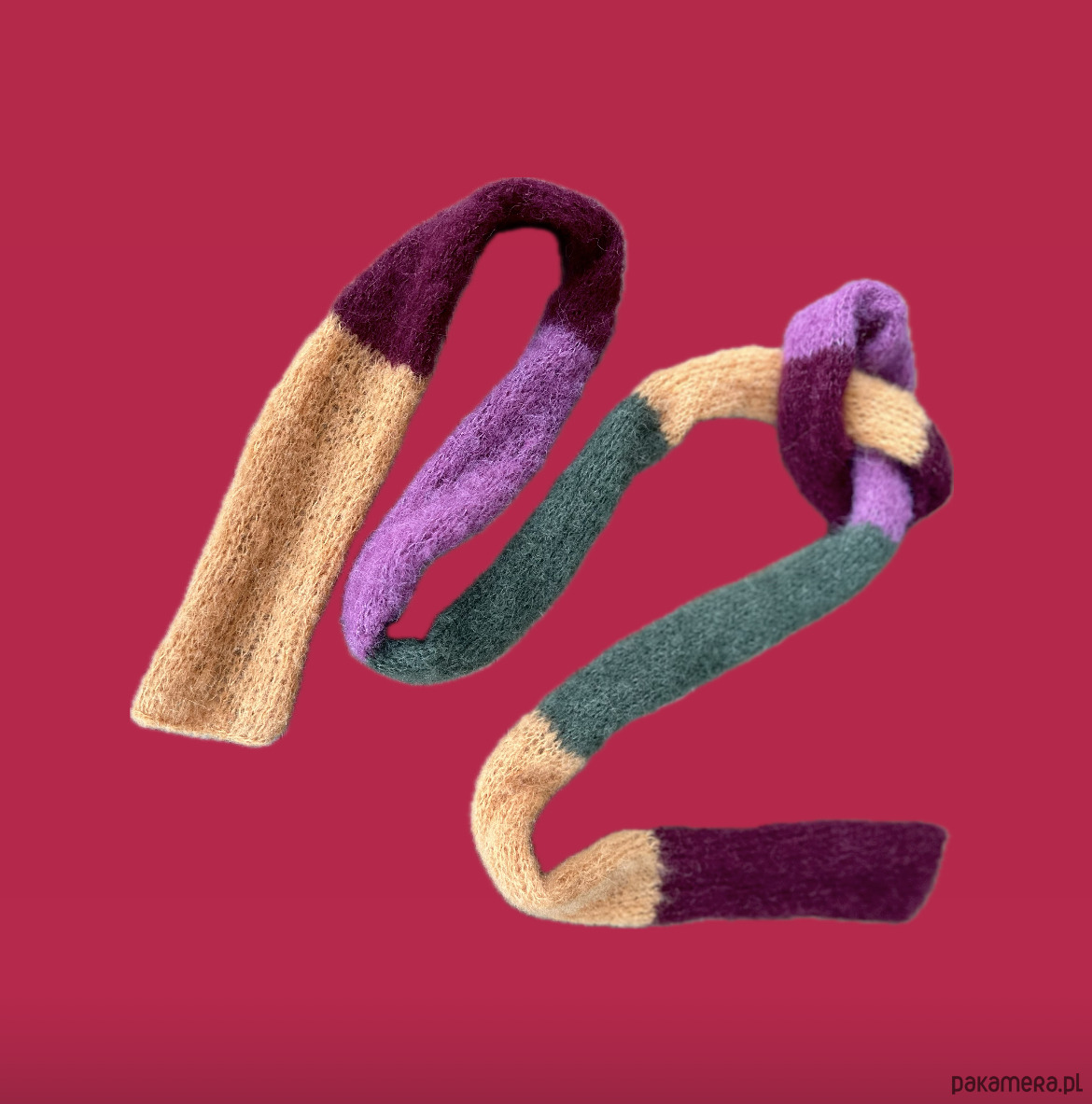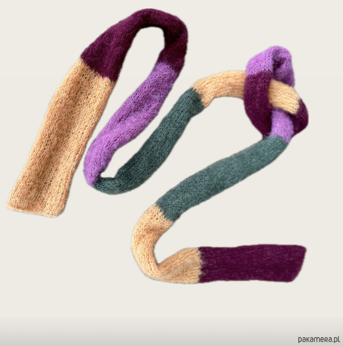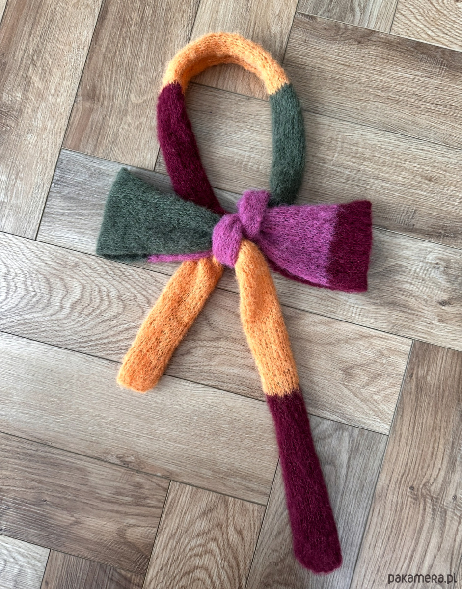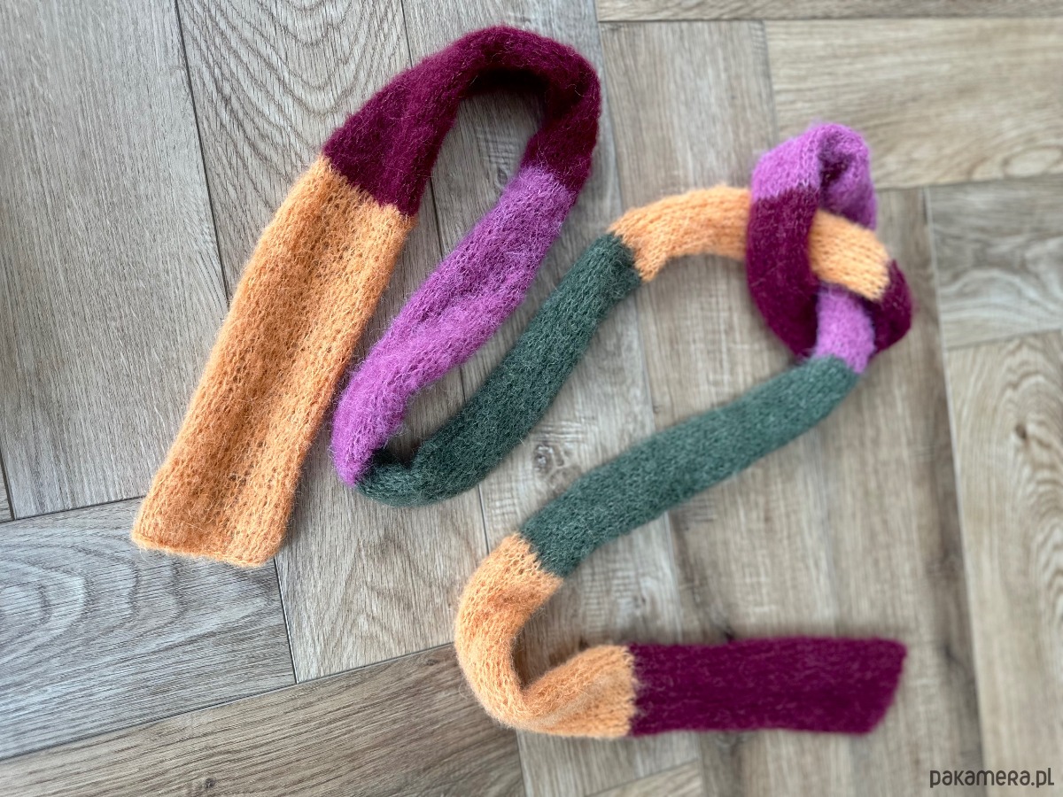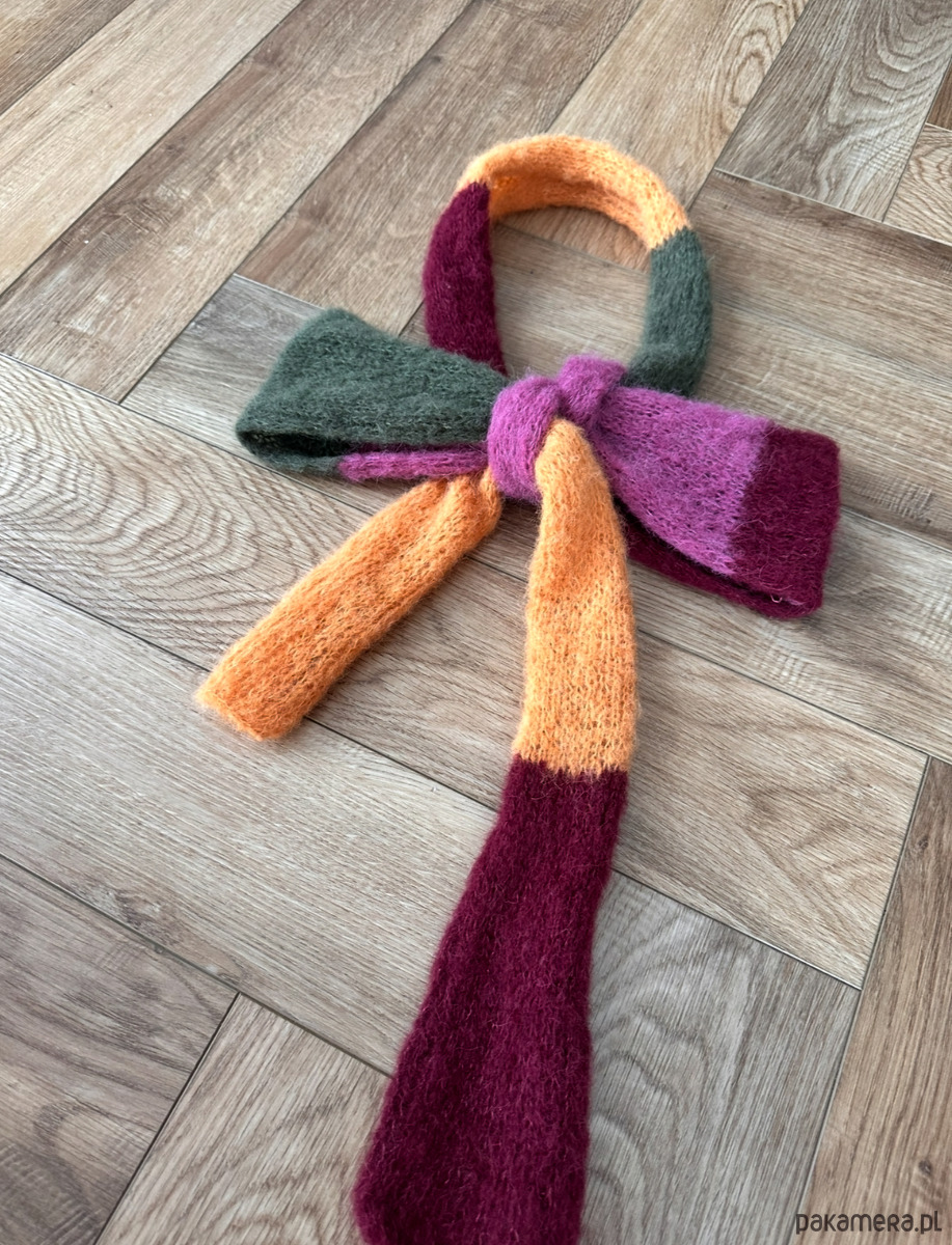 Szalik Pasiak z alpaki i jedwabiu zrobiony ręcznie