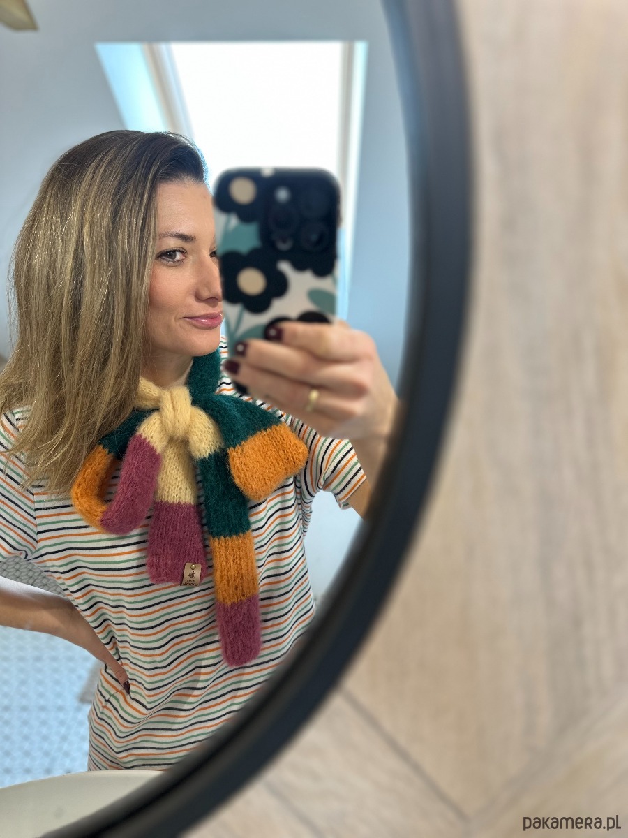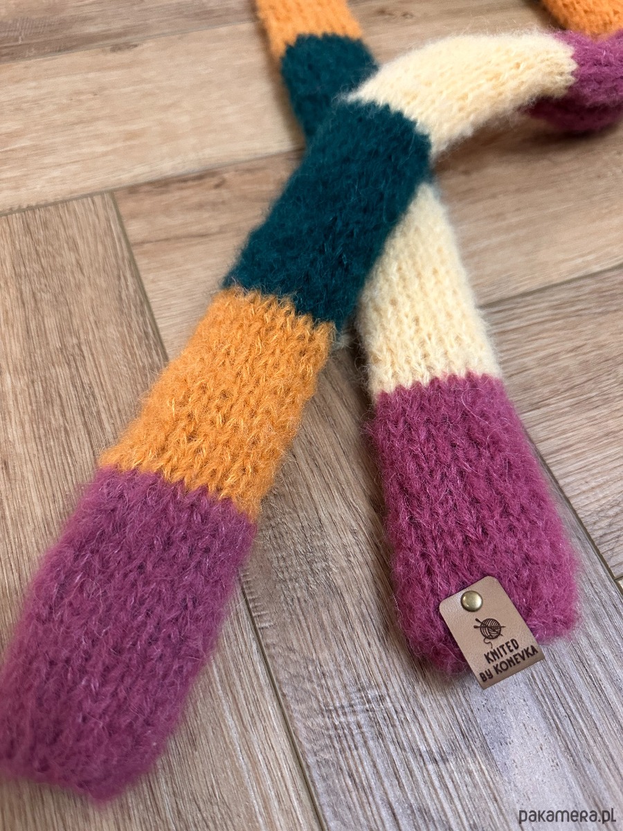 Szalik robiony ręcznie na drutach Alpaka i jedwab Kolorowy