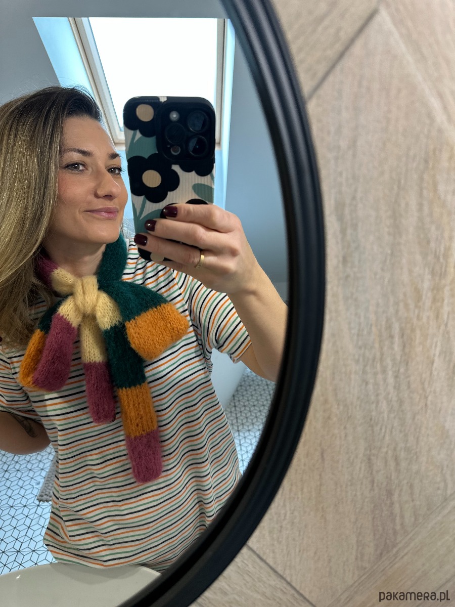 Szalik mierzy około 180 cm. Można go wiązać w kokardę, co pięknie zdobi i sprawi ze Twoja stylizacja przybierze zupełnie wyjątkowy i doskonały wymiar.