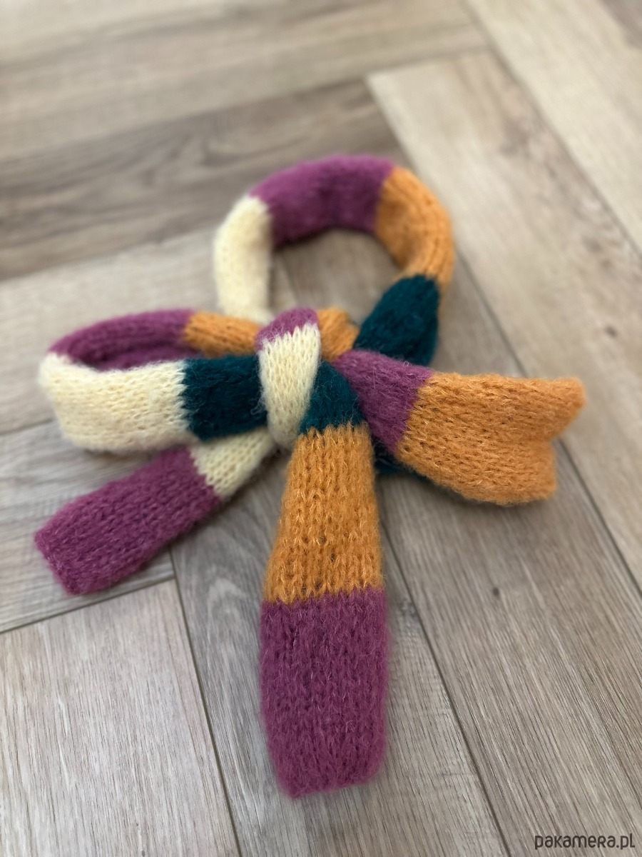 Szalik robiony ręcznie na drutach Alpaka i jedwab Kolorowy