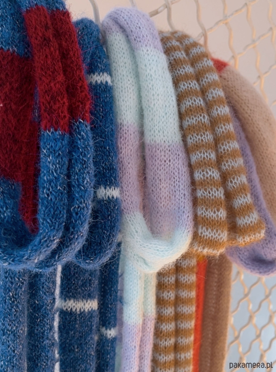 Wełny zawsze dobieram bardzo starannie i zwracam uwagę na ich skład. Szaliki w tek kolekcji różnią się od siebie. Jedne są bardziej mięsiste inne ażurowe.