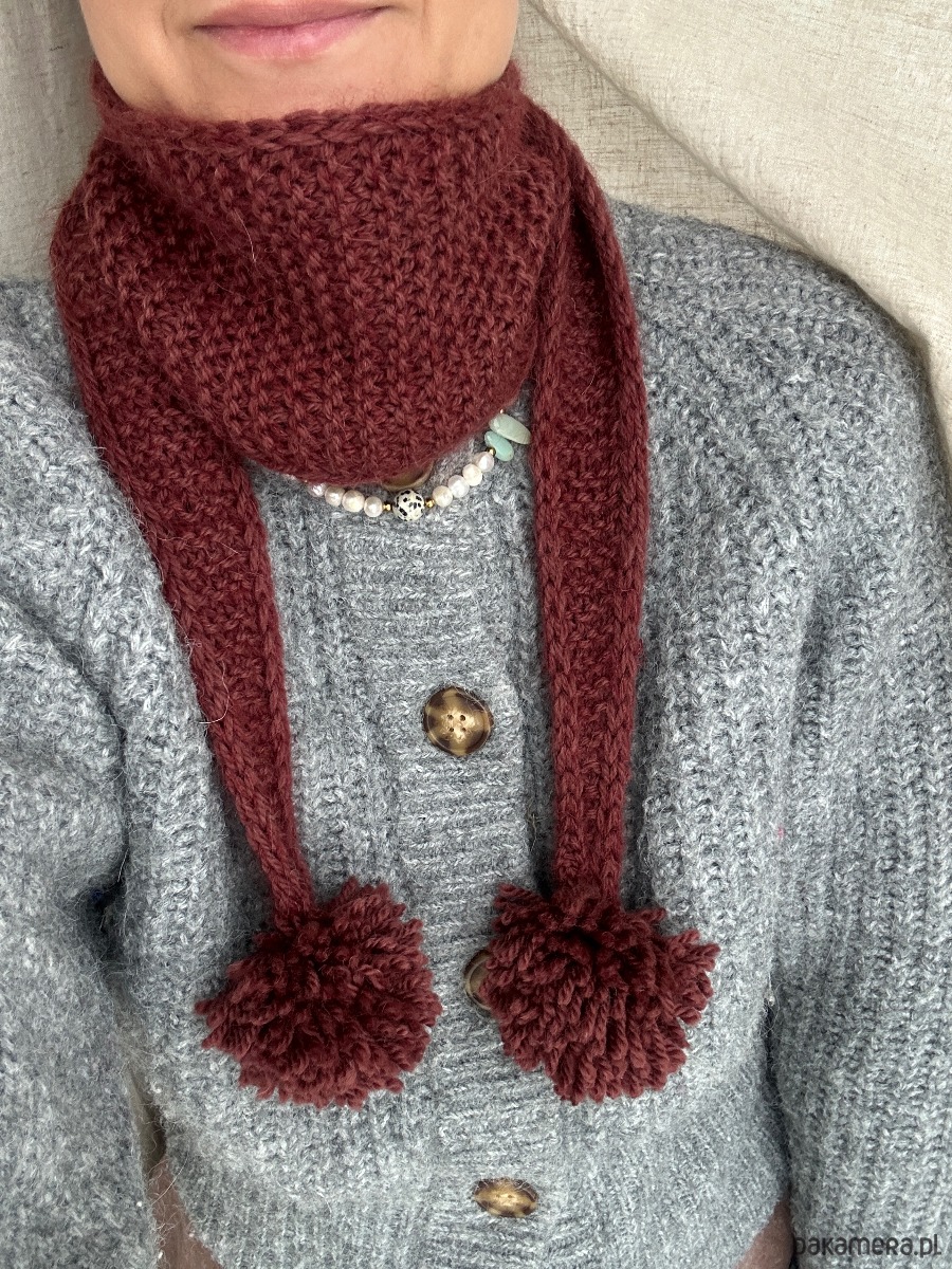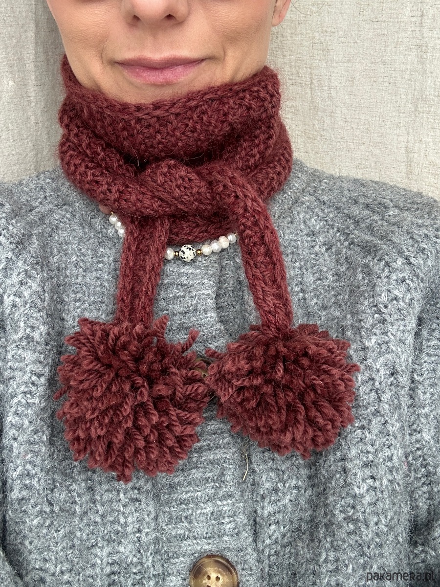 Szalik wykonany z mieszanki wełny peruwiańskiej i alpaki plus dodatkowa nic moheru i jedwabiu