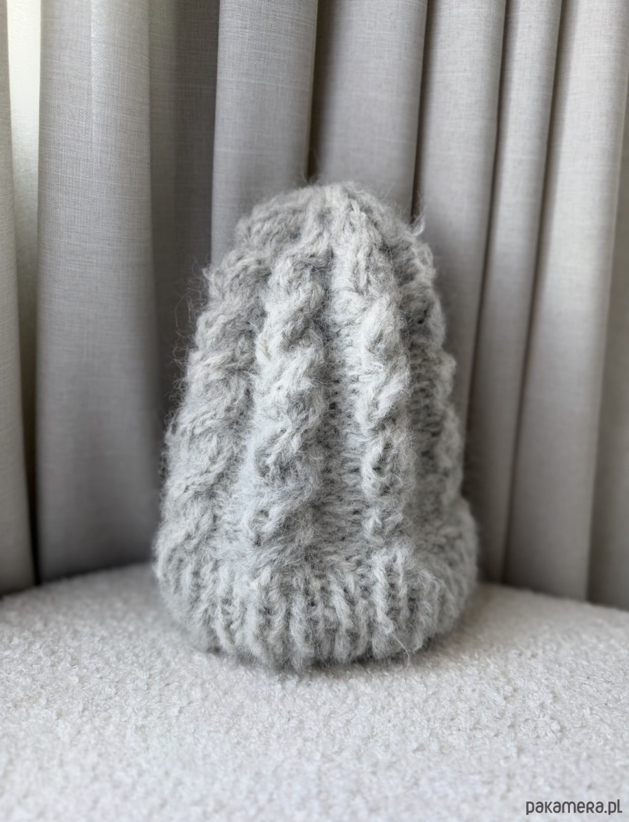 Czapka z delikatnej, miękkiej włóczki. baza to 74% alpaka 25% merino 4% poliamid. Czapka będzie odpowiednia na głowy wieksze i dla osób lubiących luźne fasony