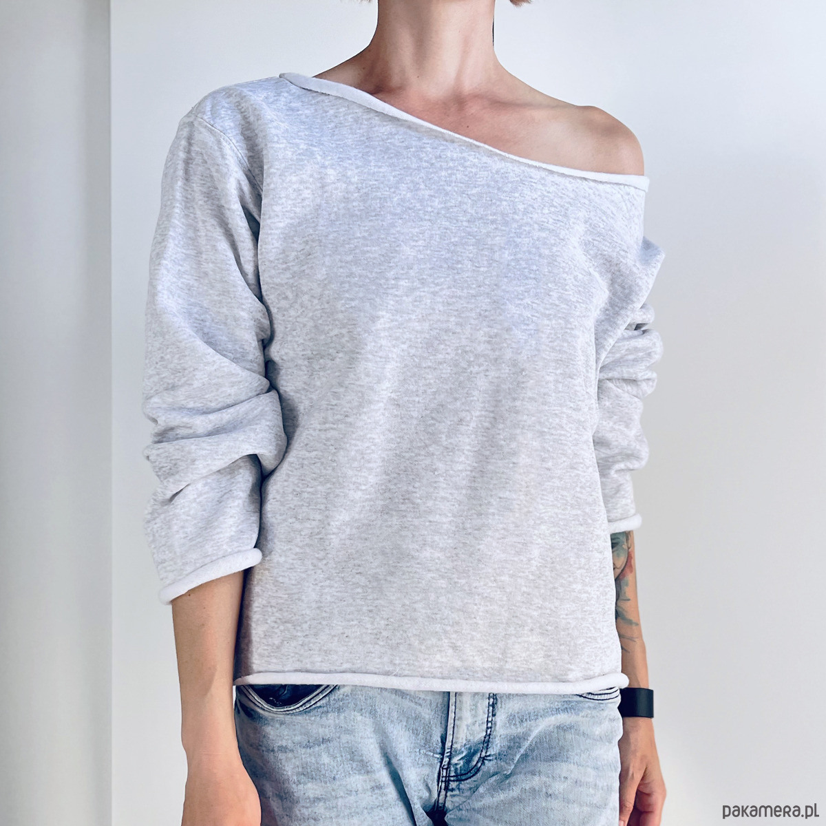 Szara bluza cięta Bez ściągaczy