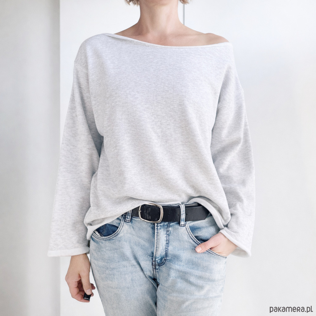 Wygodna i stylowa szara bluza bez ściągaczy.