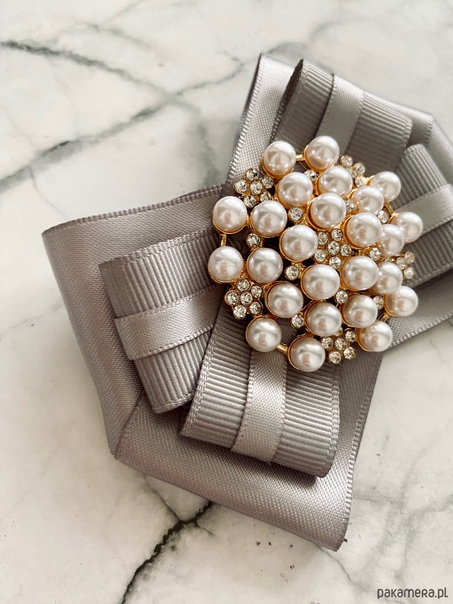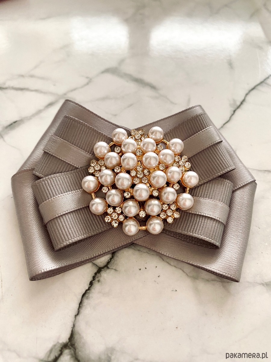 Broszka wykonana z wysokiej jakości taśm i dodatków.
