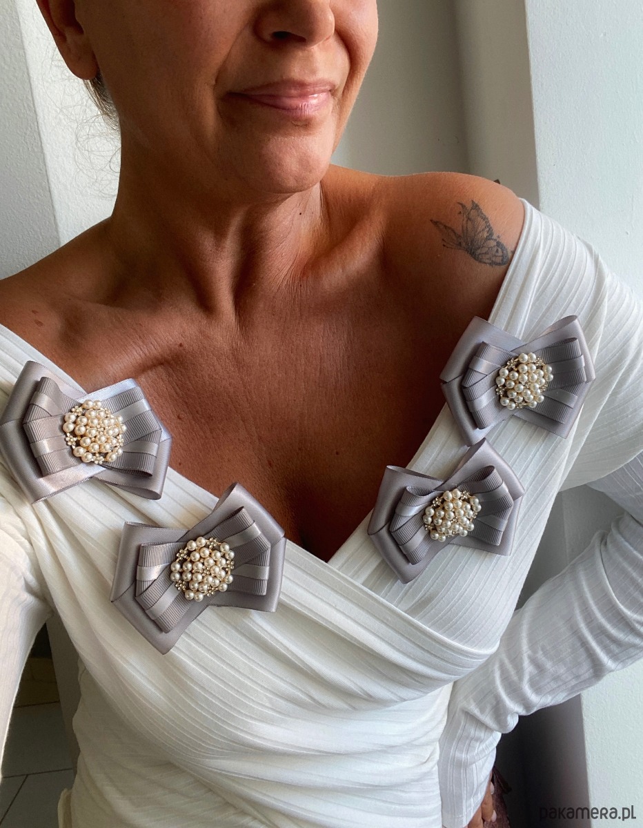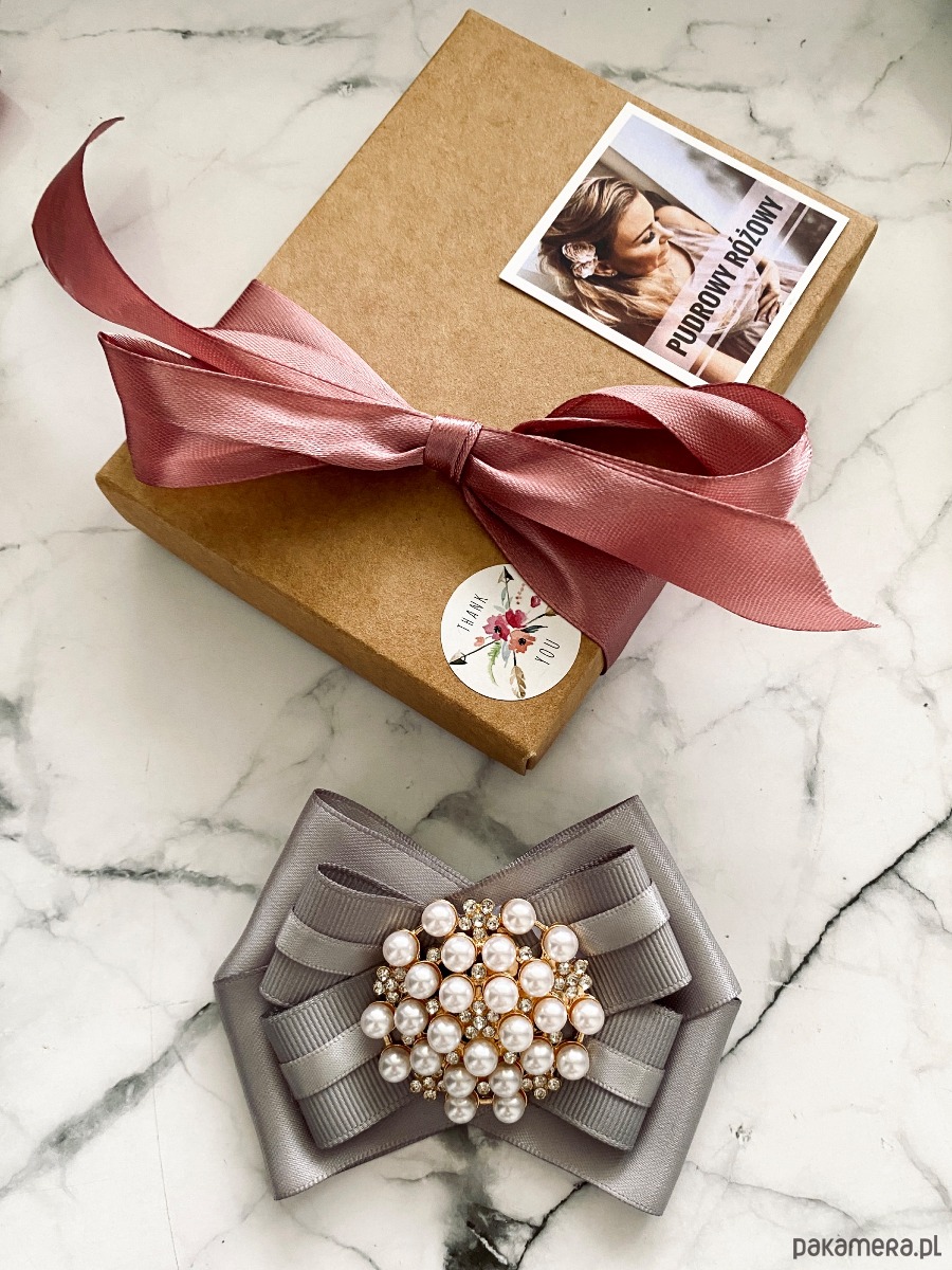 Broszka wykonana z wysokiej jakości taśm i dodatków.