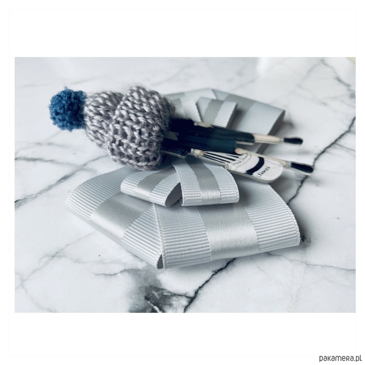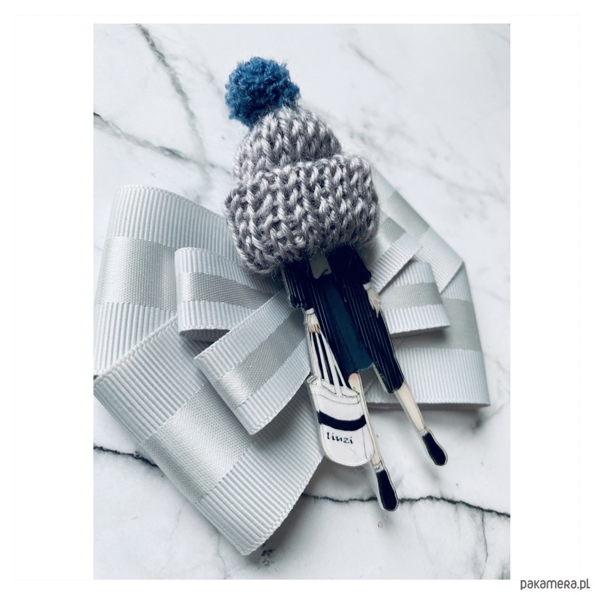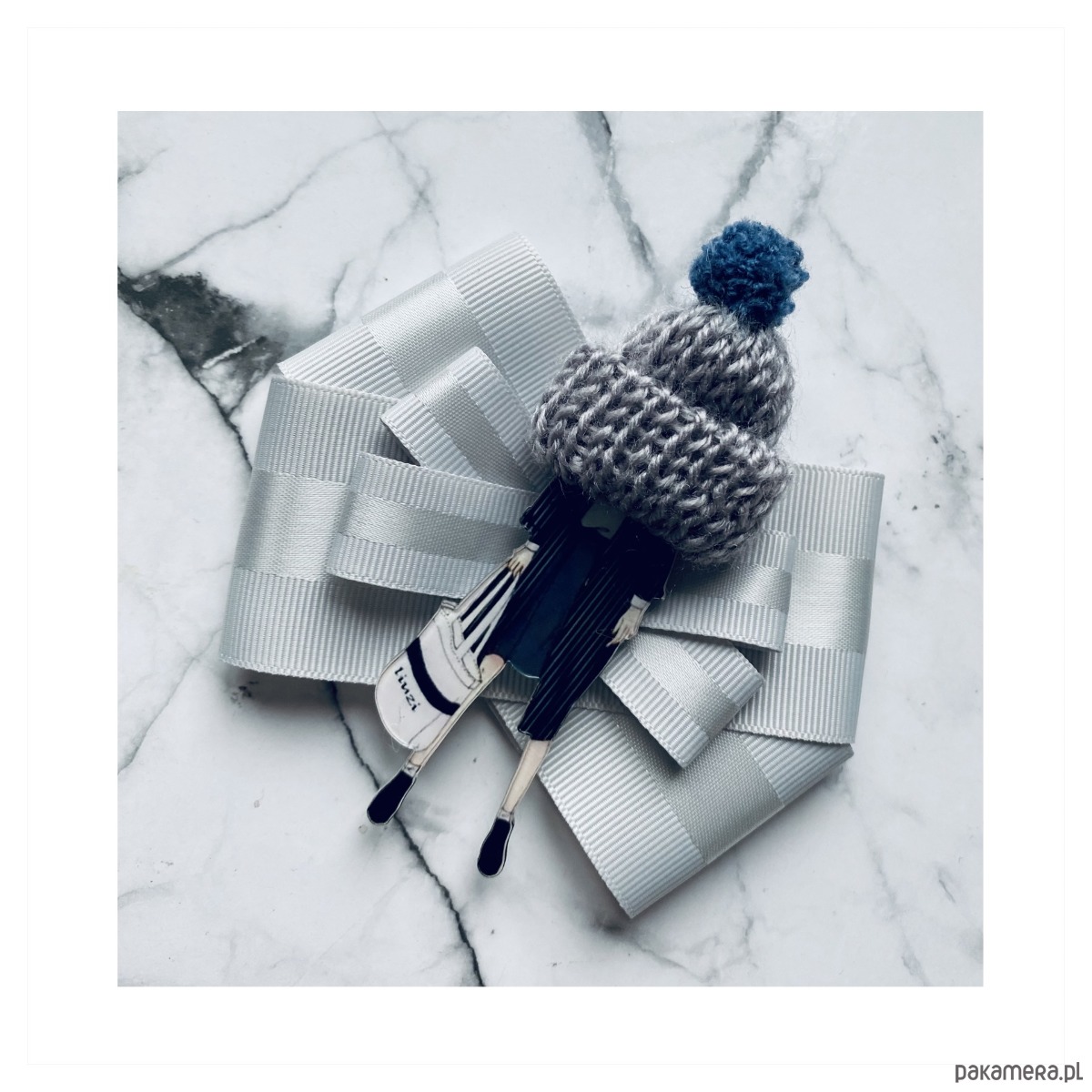 Broszka wykonana z wysokiej jakości taśm i dodatków.