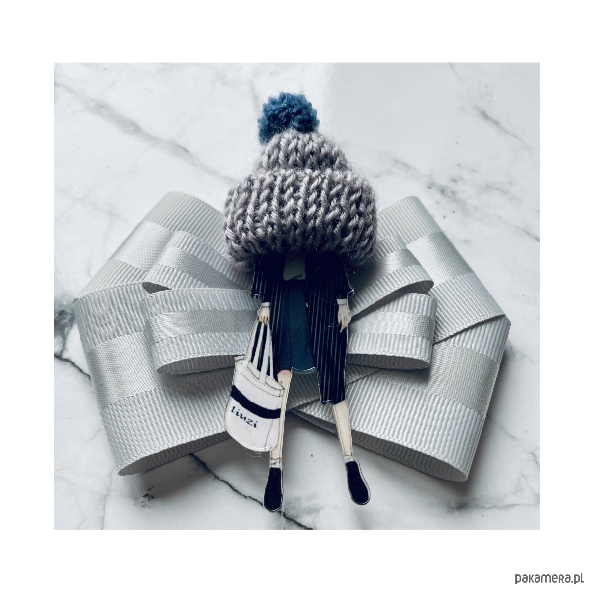 Na środku naszyta cudowna ozdoba trójwymiarowa laleczka z czapką i z kryształkiem.