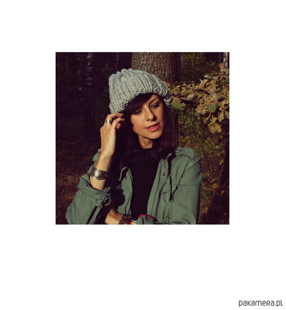 Ręcznie wykonana ,gruba, mięsista czapka w kolorze jasnym szarym.