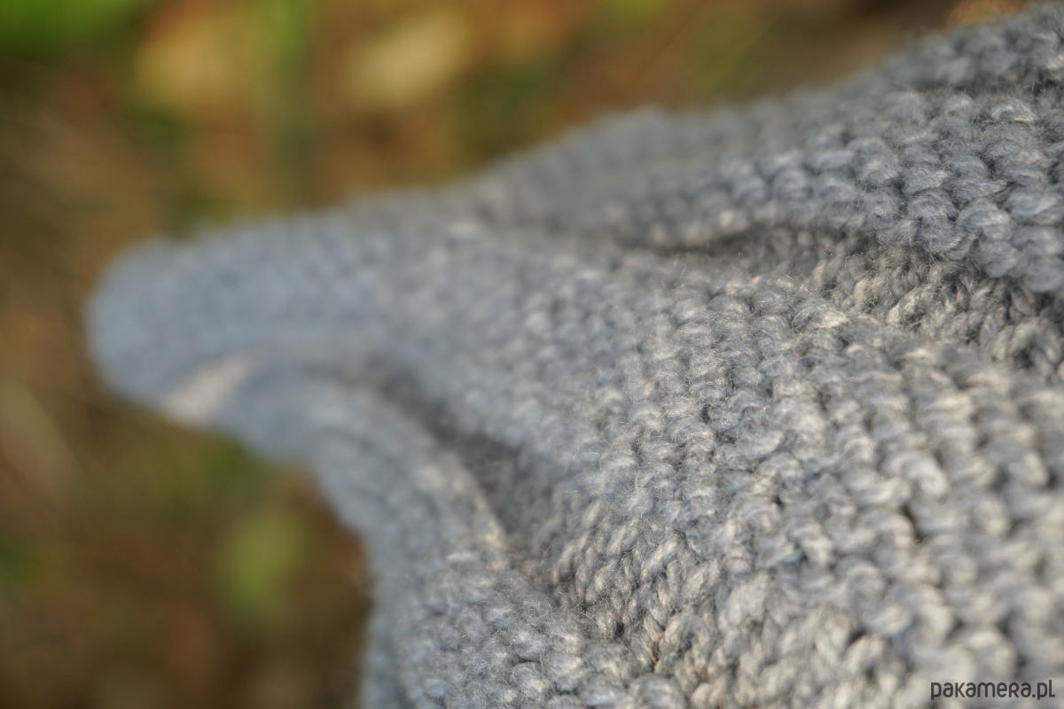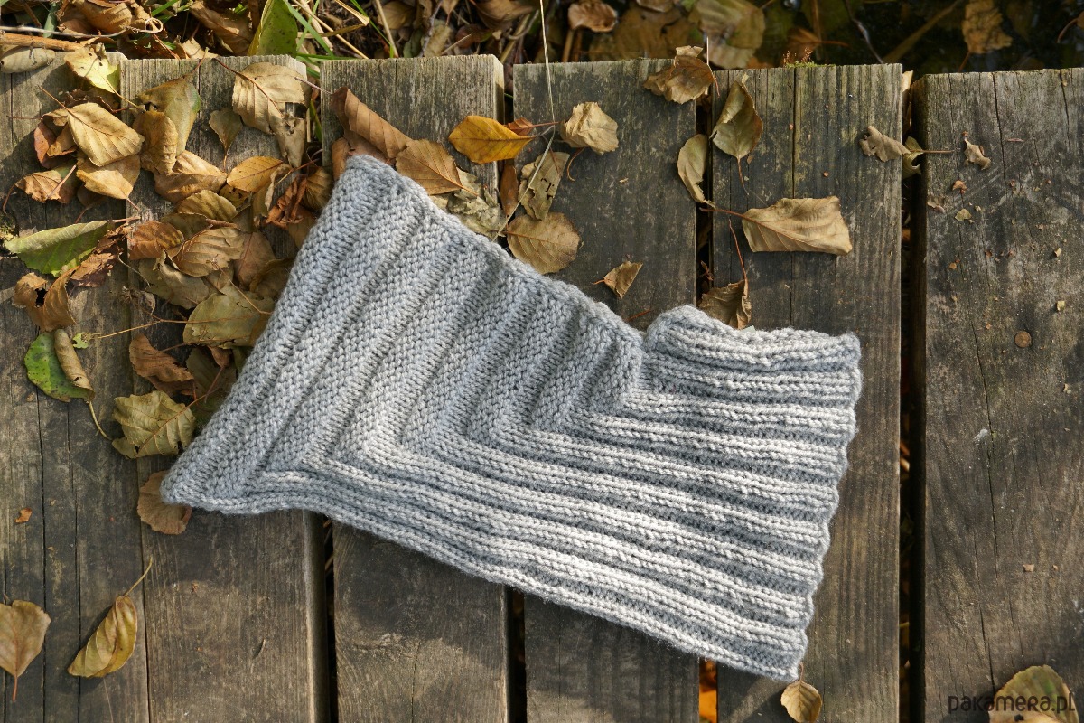 Miękka, szara kominiarka wykonana ręcznie z ciepłej mieszanki wełny i akrylu. Niedrapiąca i przyjemna w dotyku, idealna dla osób wrażliwych na chłód.